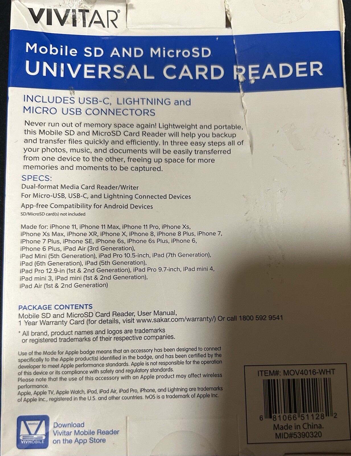 VIVITAR Mobile SD and Micro SD. Universal Card Reader