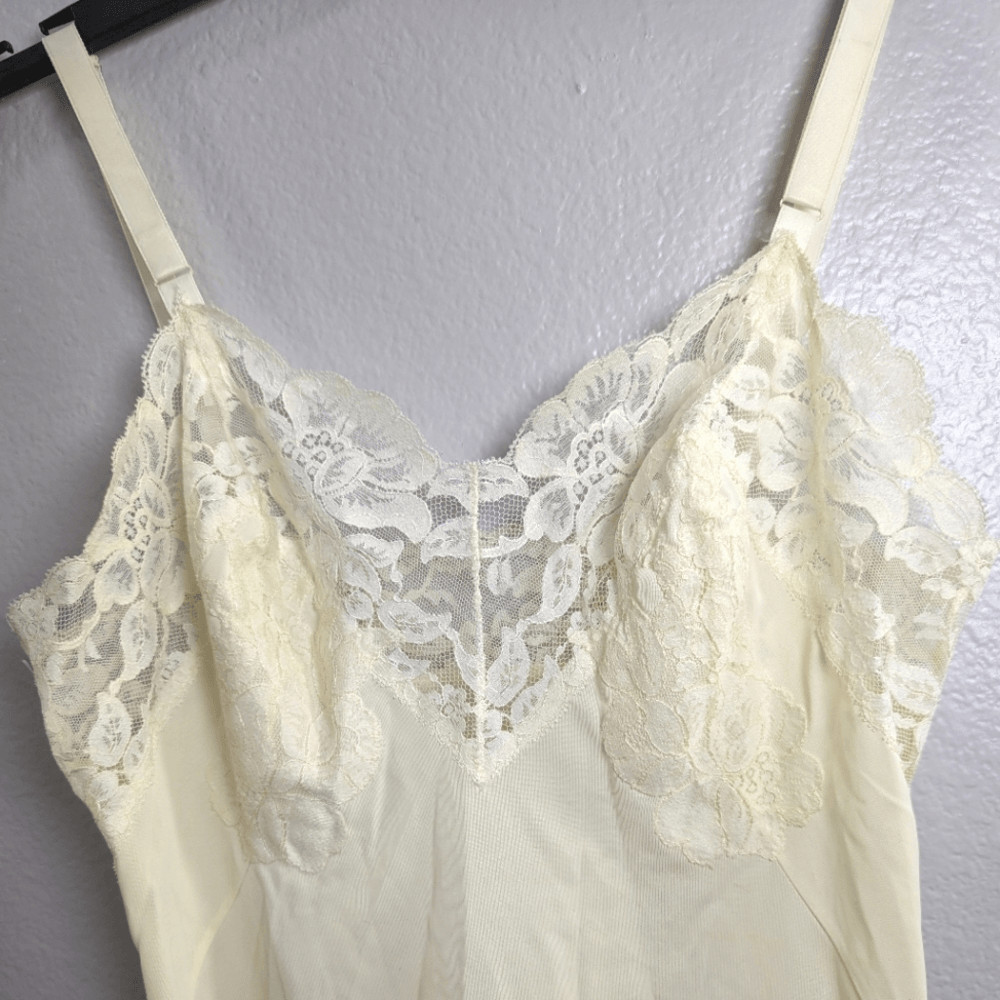 как выглядит Vintage 60s Gossard Artemis pale yellow nylon lace slip nightgown 32 short XS фото
