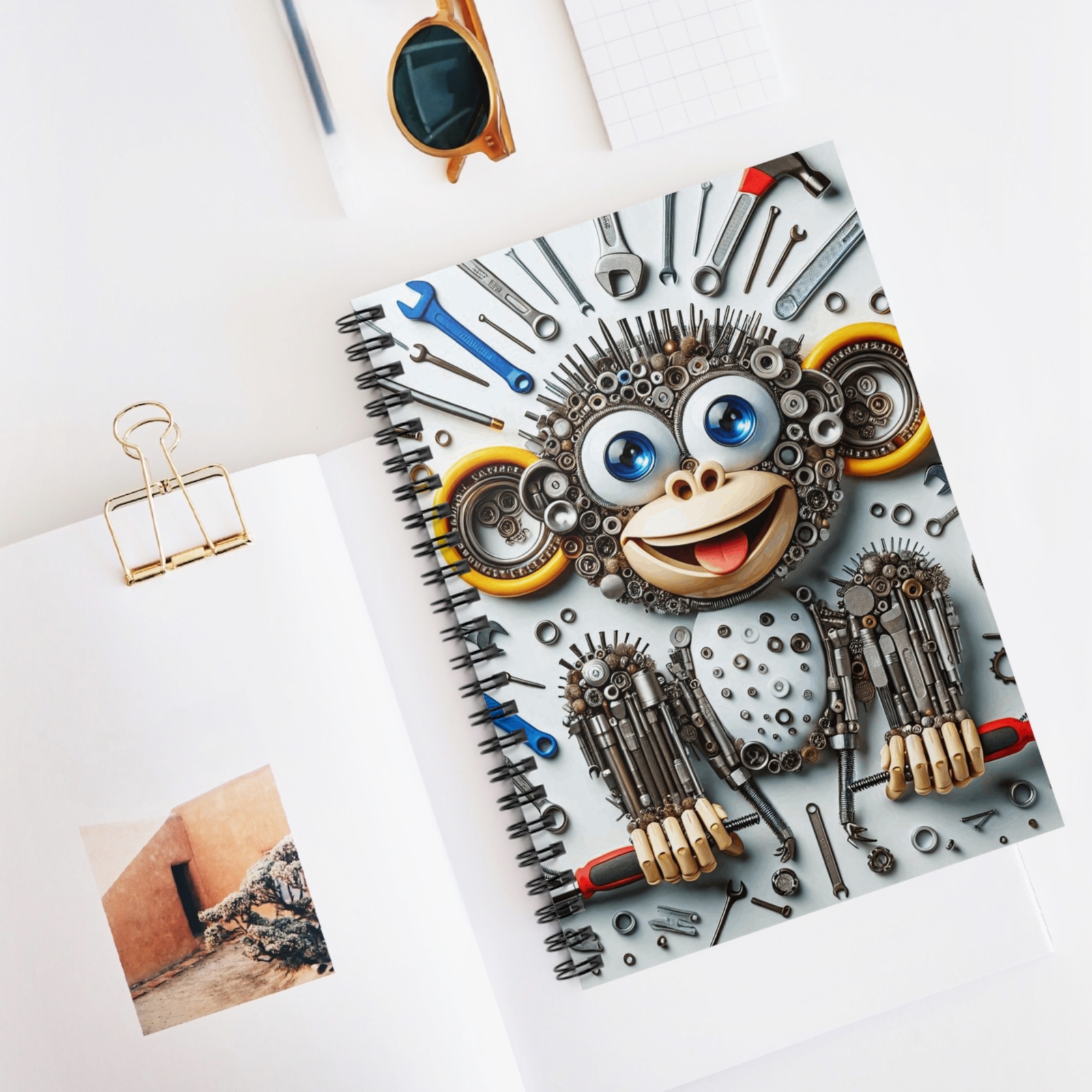 Spiral Notebook Ruled Line Monkey Constructed of Tools Design 8, Gift
