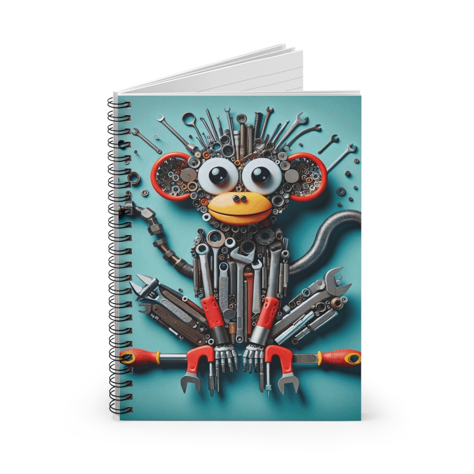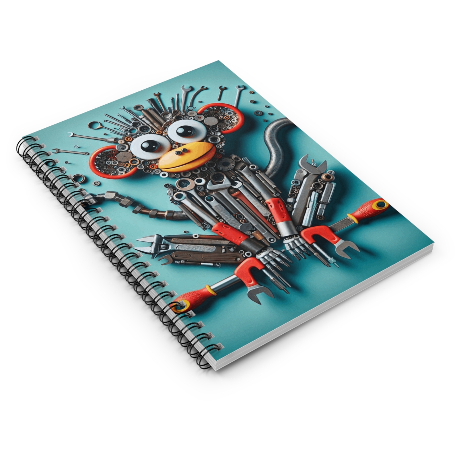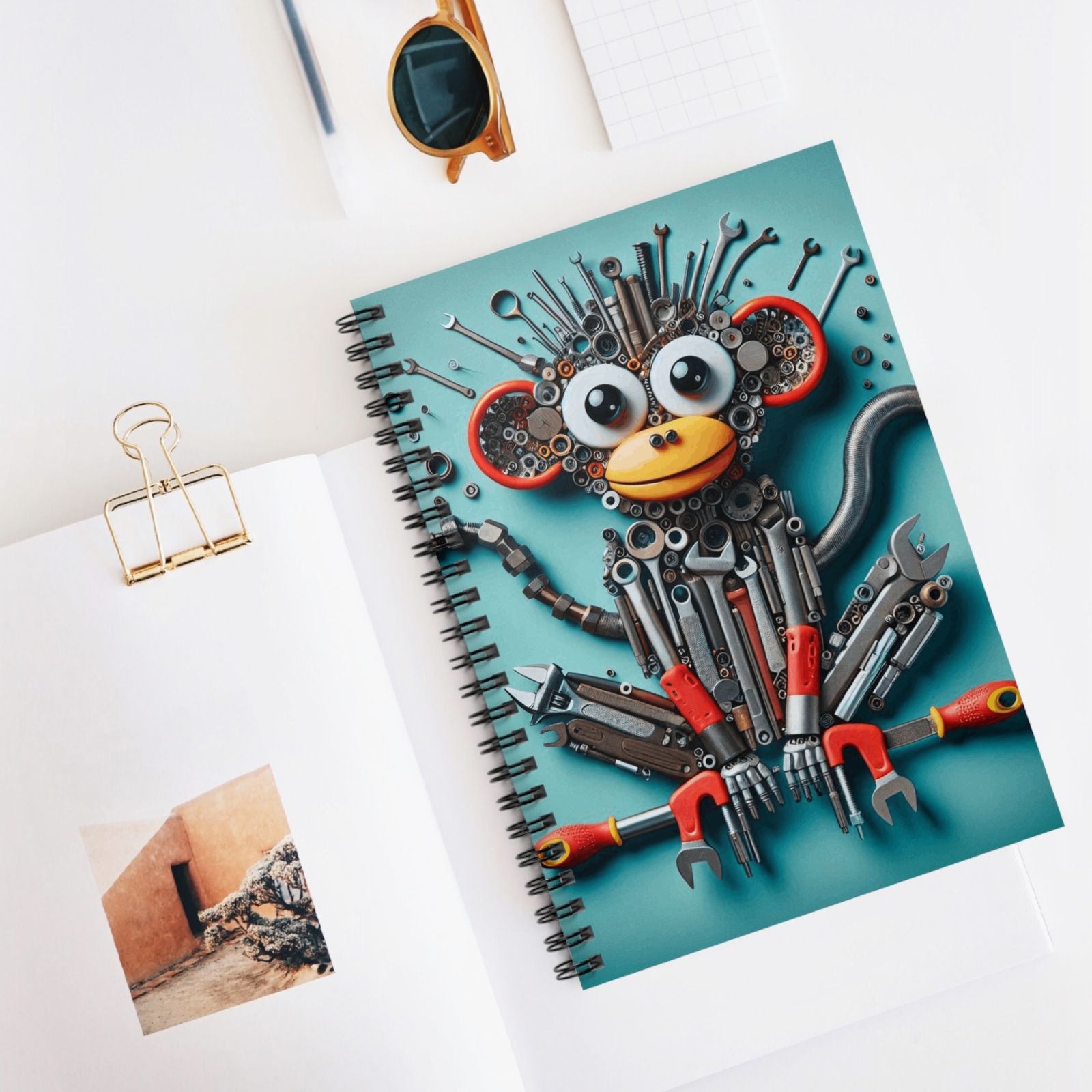 Spiral Notebook Ruled Line Monkey Constructed of Tools Design 10, Gift