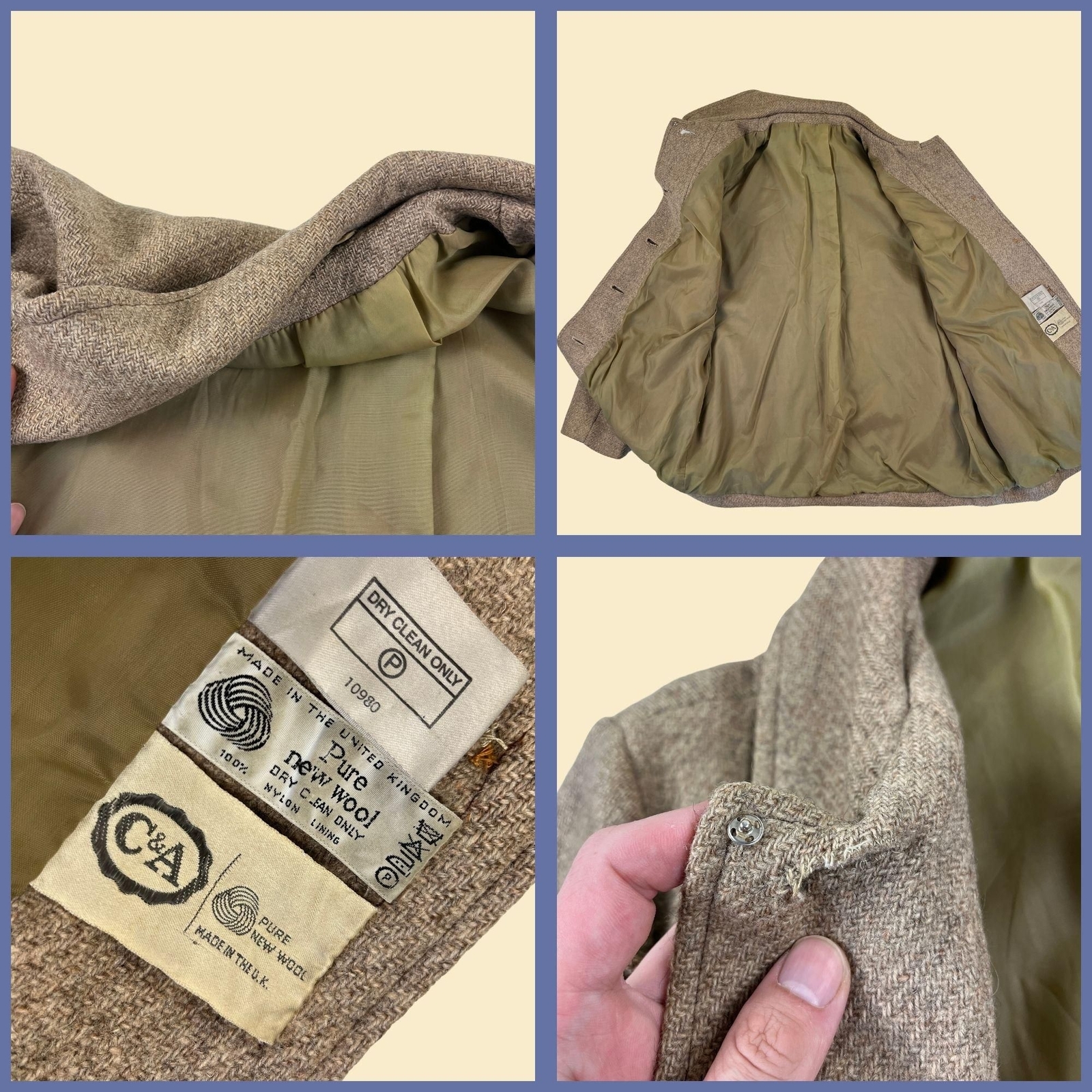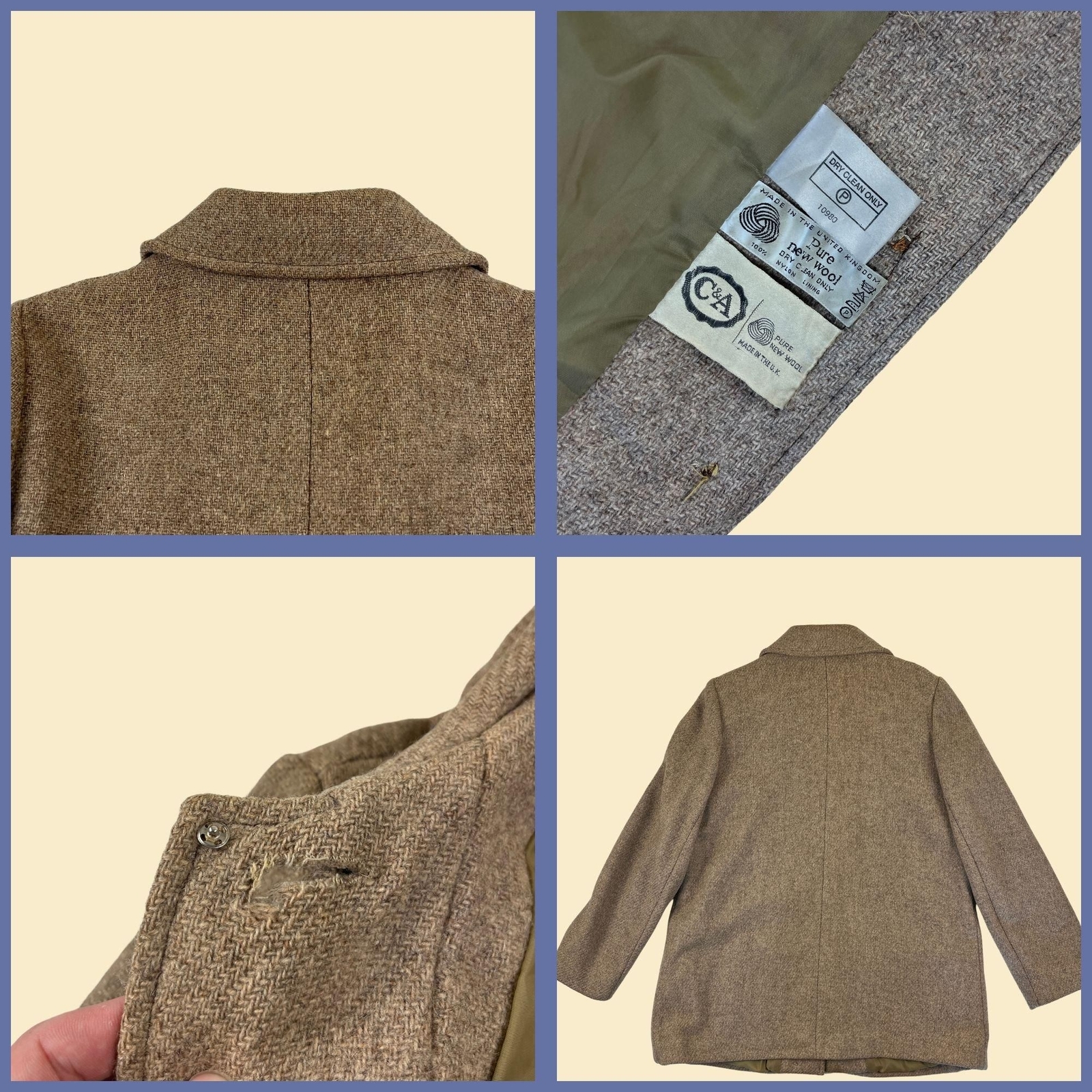 как выглядит 1970s tweed womens coat by C A, vintage wool beige button down coat фото