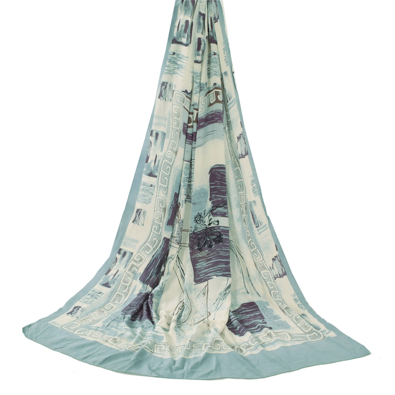 как выглядит Sanskriti Vintage Grey/White Long Dupatta/Stole Pure Crepe Silk Printed Scarves фото