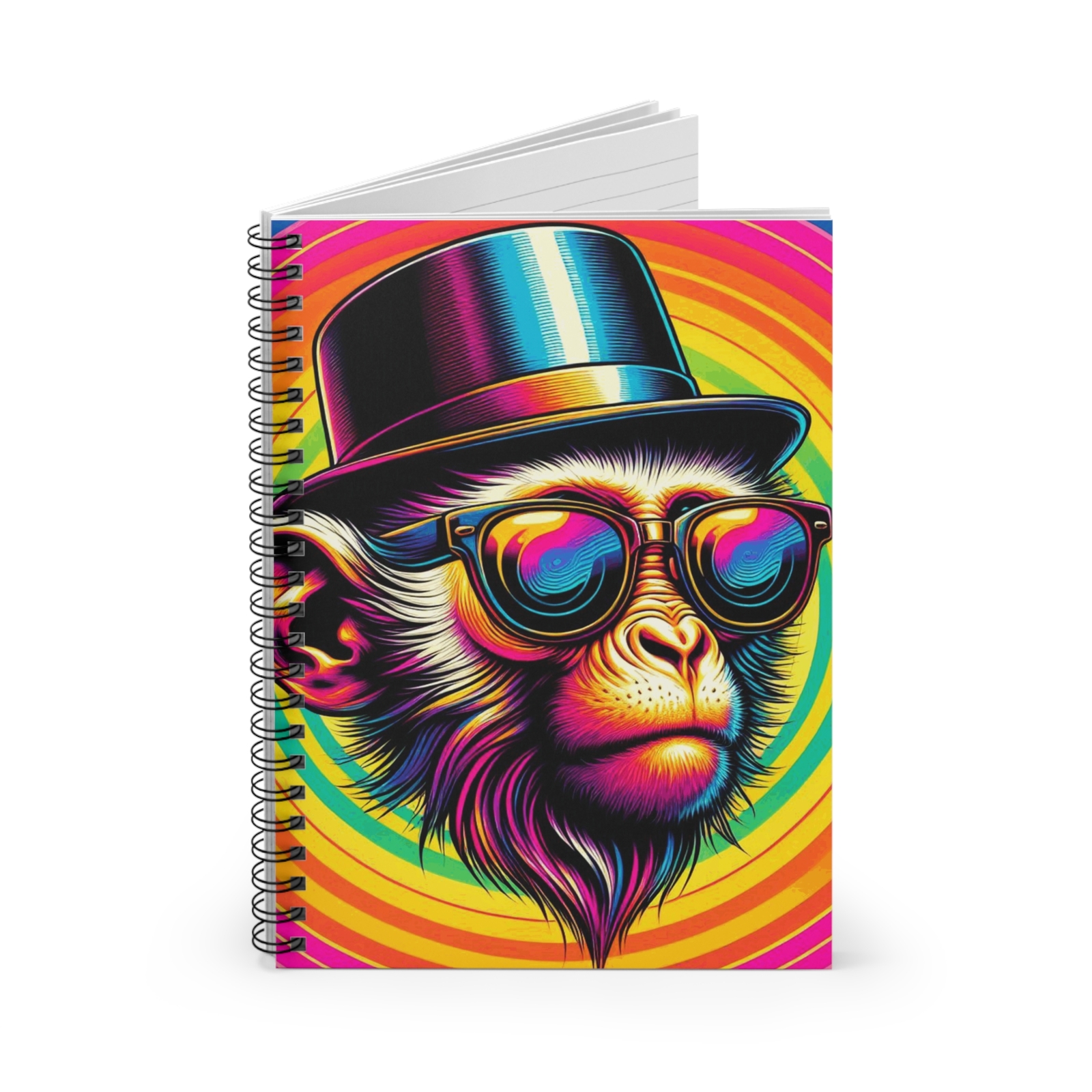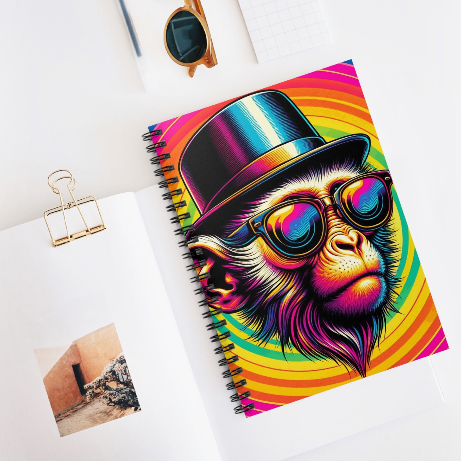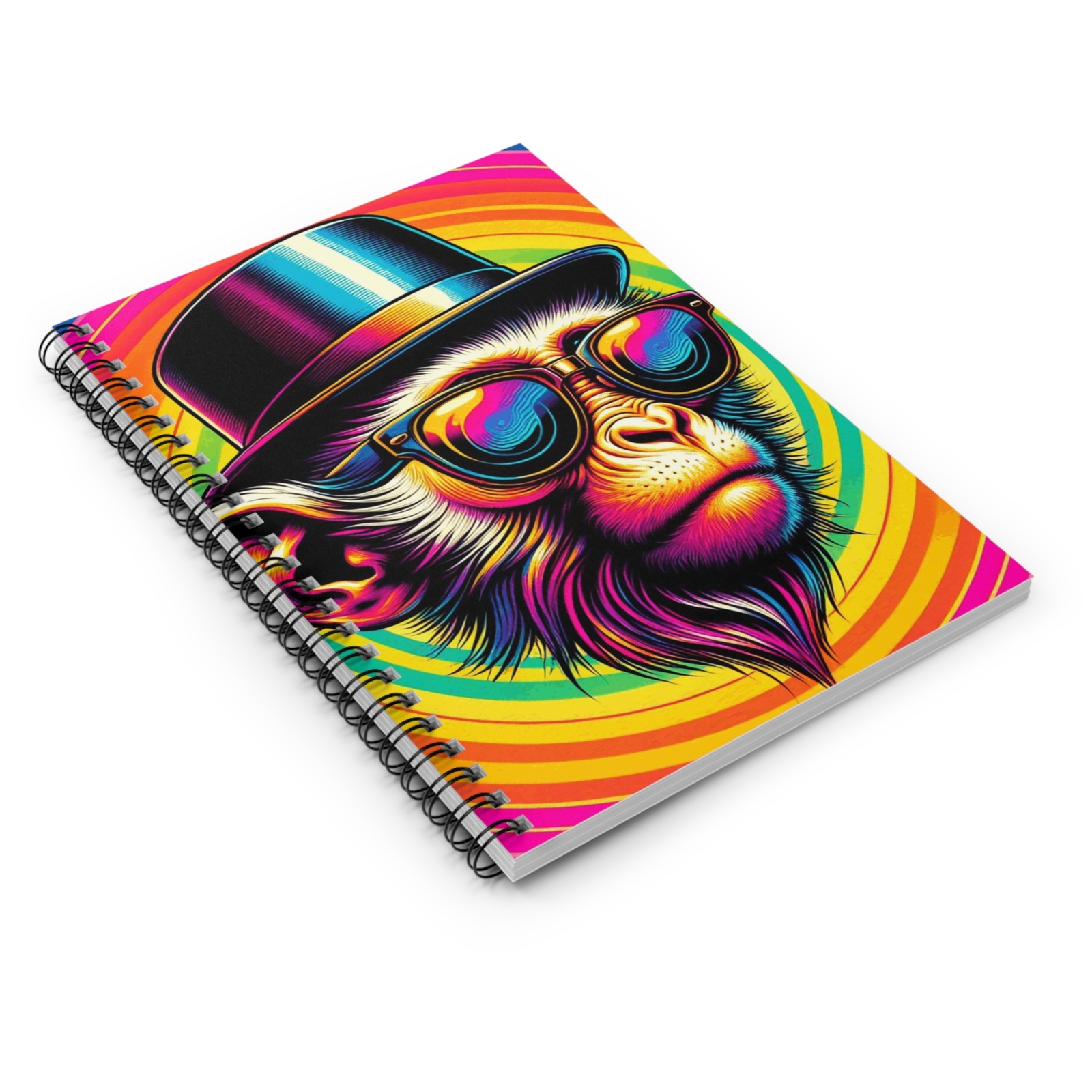 Spiral Notebook Ruled Line Monkey with Sunglasses Psychedelic Design 1, Gift
