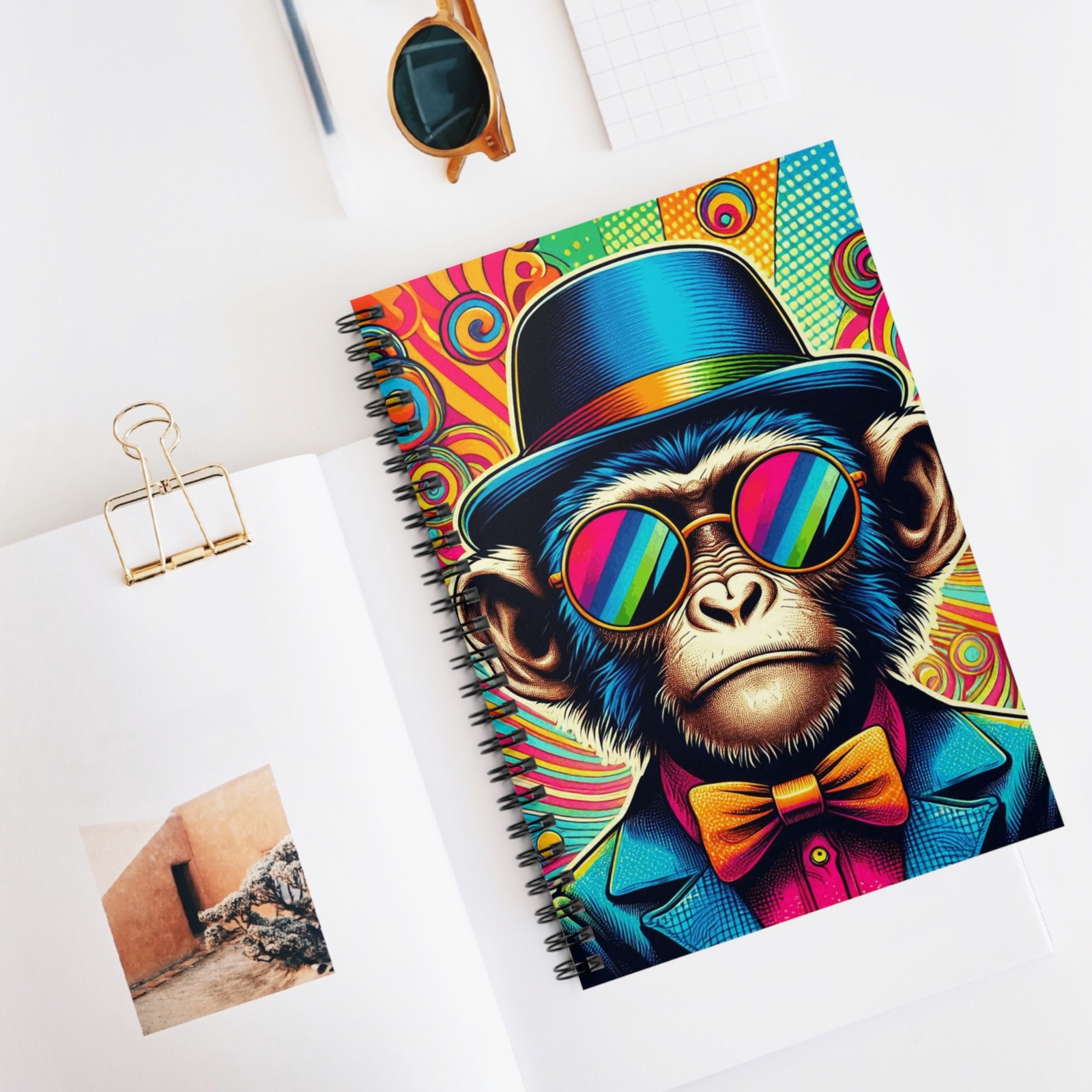 как выглядит Spiral Notebook Ruled Line Monkey with Sunglasses Psychedelic Design 4, Gift фото