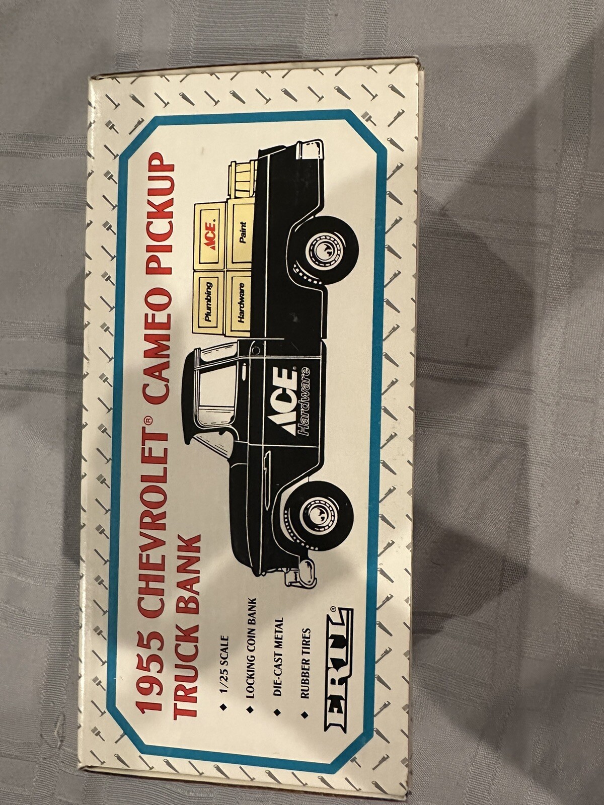 как выглядит 1994 ERTL 1955 Chevrolet Cameo Pickup Truck Bank Ace Hardware 1:25 NIB Key VTG фото