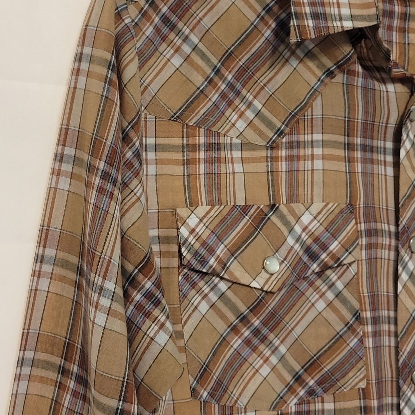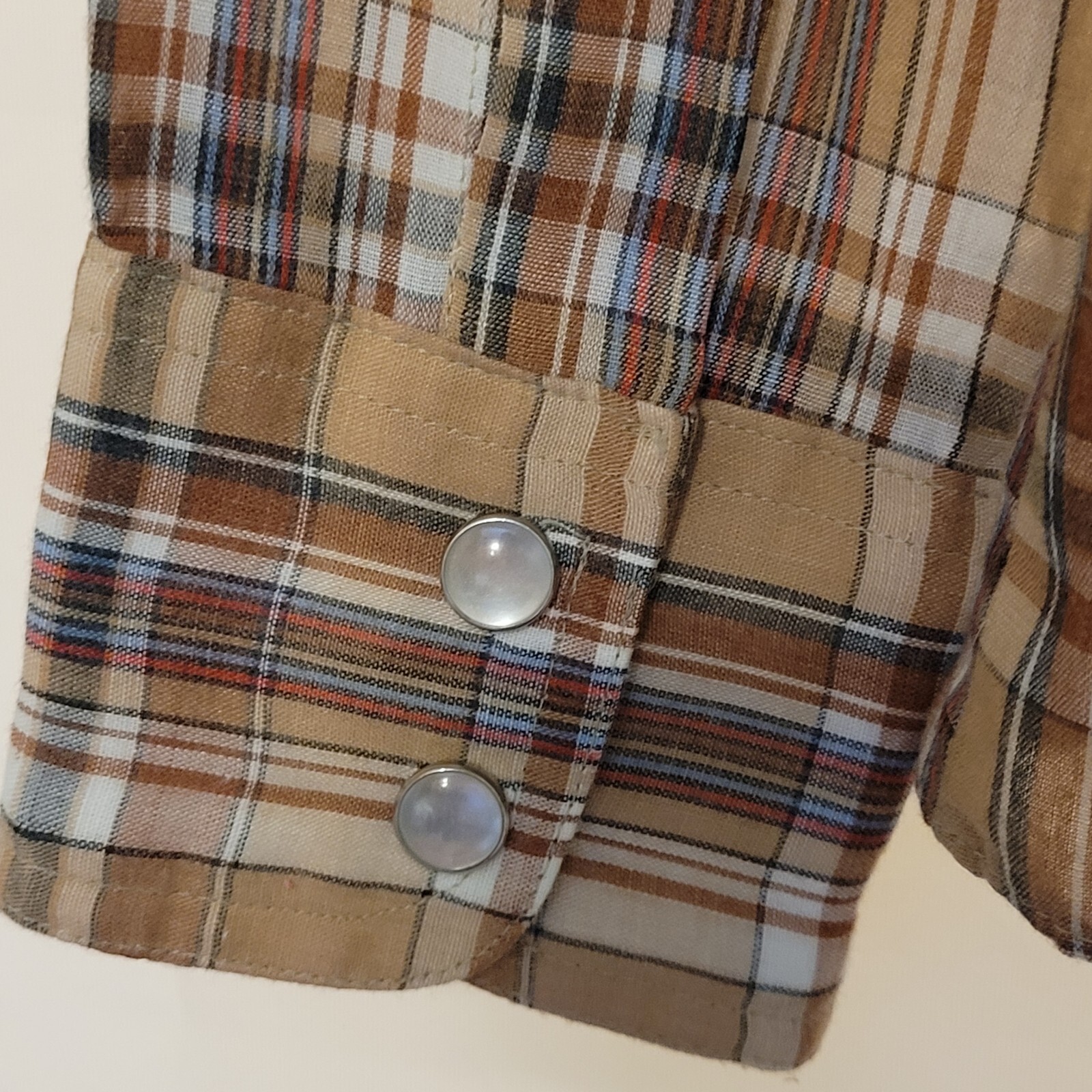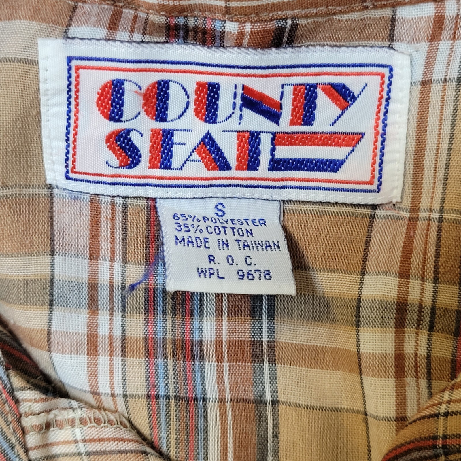 VTG County Seat Men's Brown Plaid Pearl Snap Long Sleeve Western Shirt Sz Small