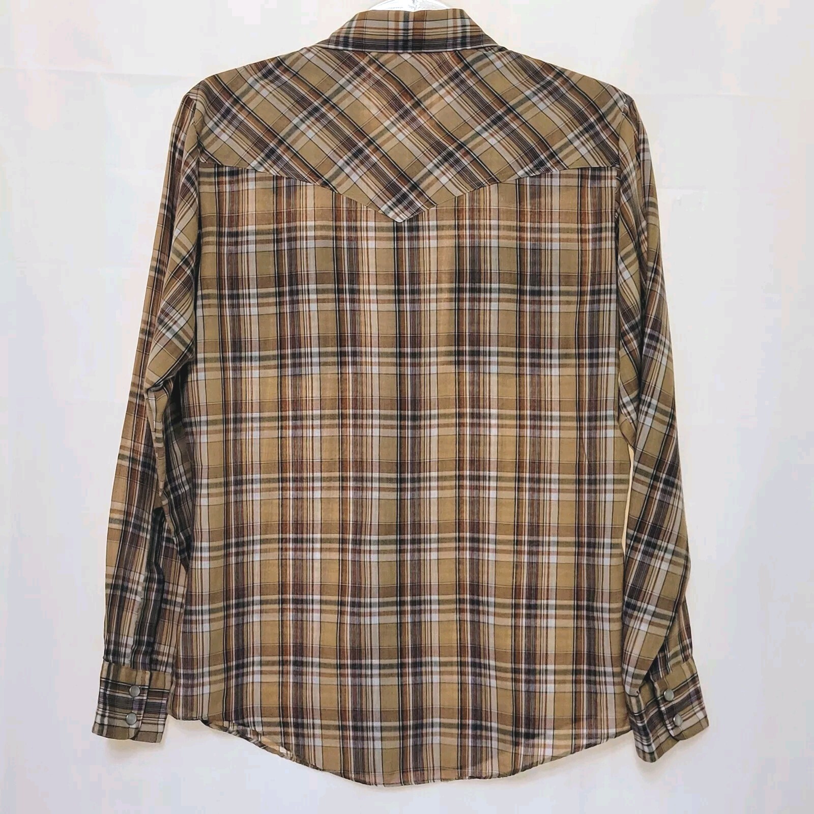 как выглядит VTG County Seat Mens Brown Plaid Pearl Snap Long Sleeve Western Shirt Sz Small фото