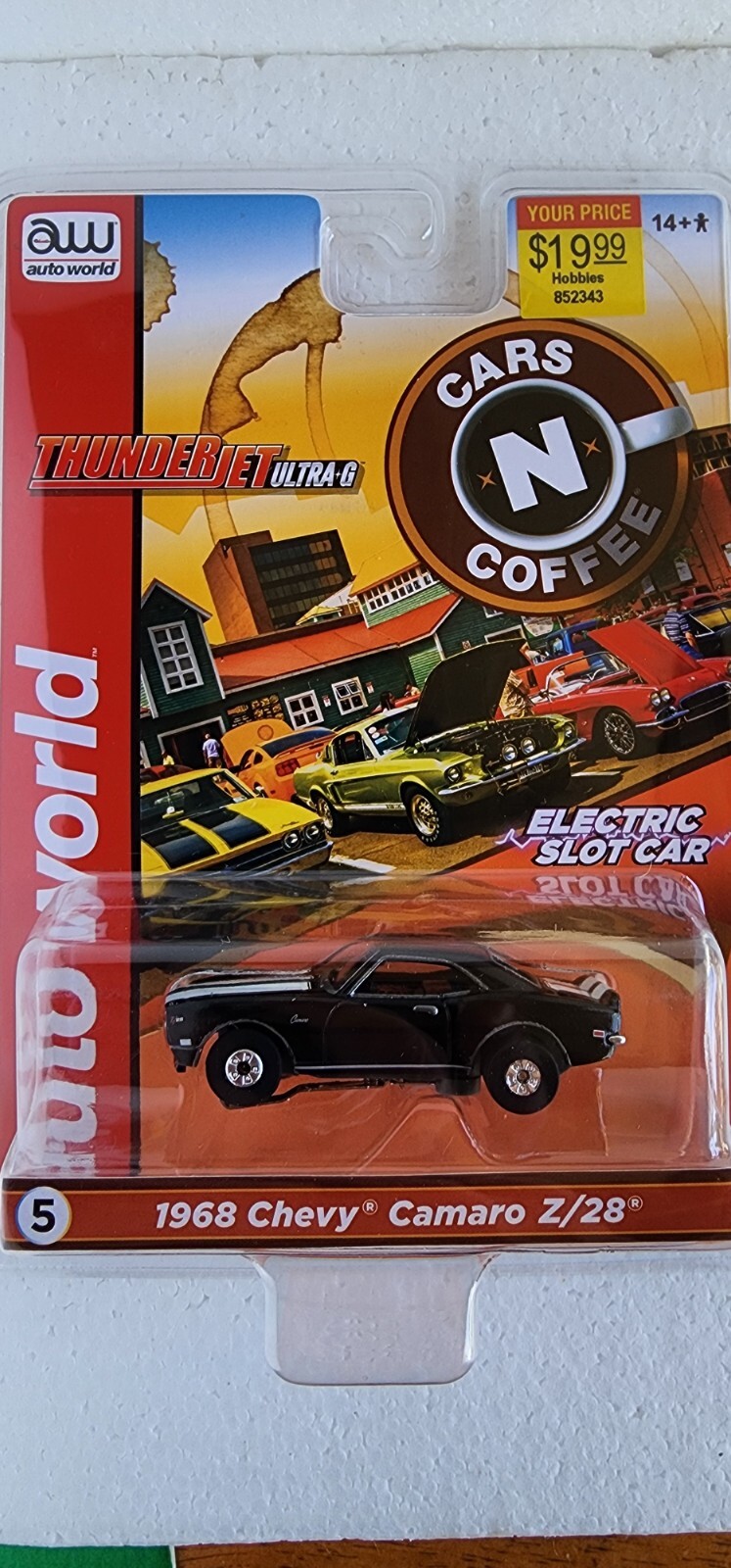 как выглядит Auto World Thunderjet Cars N Coffee 1968 Chevrolet Camaro Z28 Black HO Slot Car фото