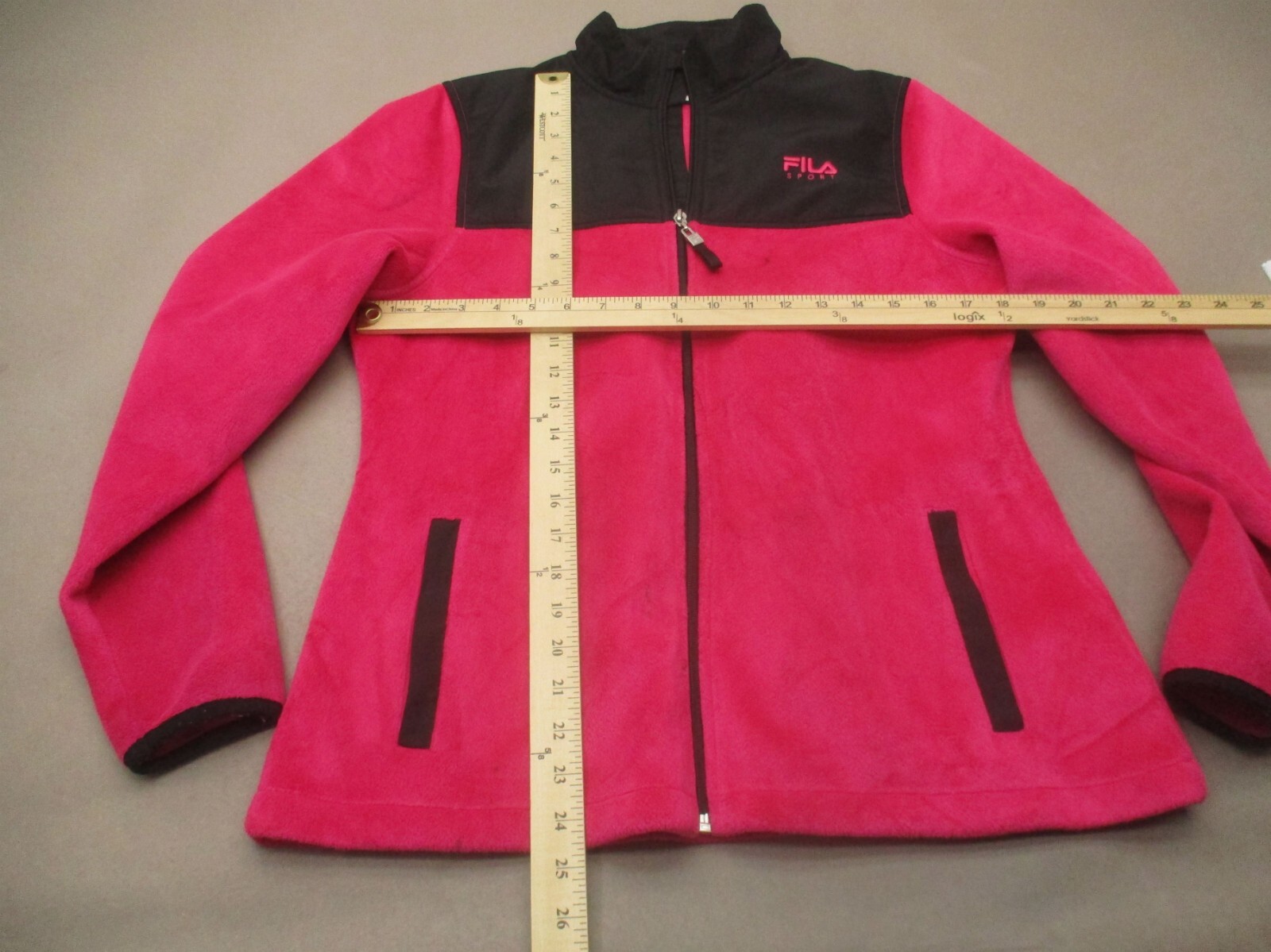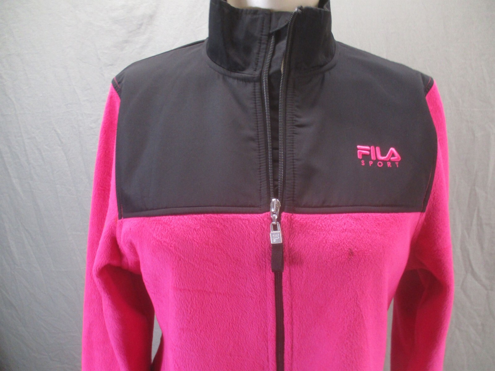 как выглядит FILA Size M Womens pINK Full Zip Stand Collar Pocket Fleece Athletic Jacket 732 фото