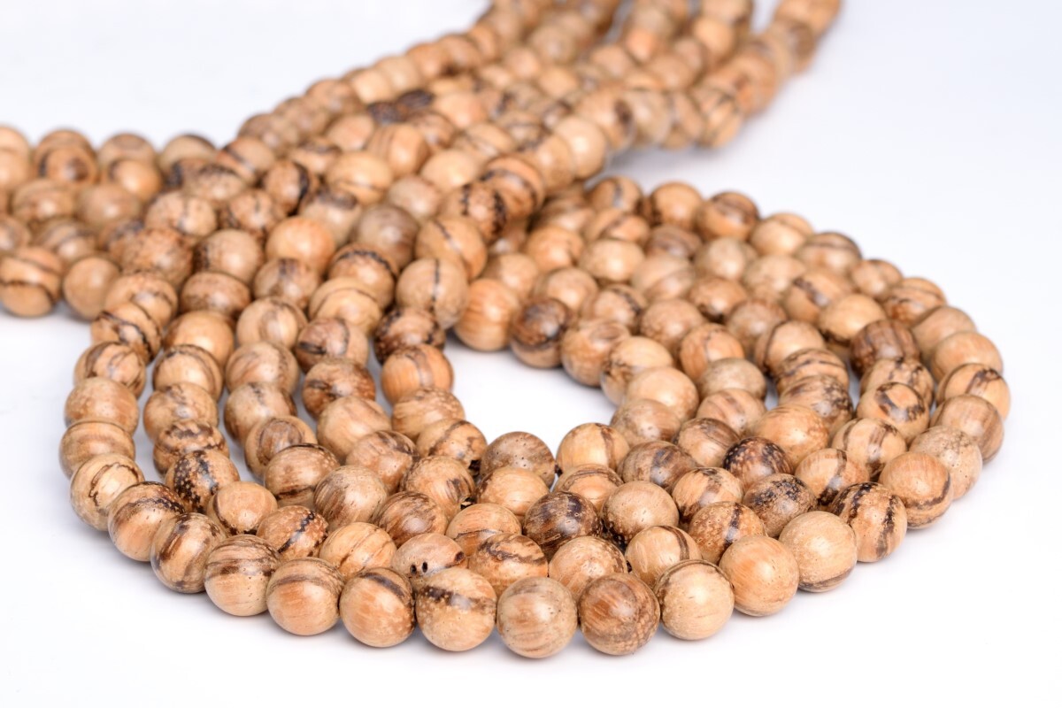 как выглядит 8MM 108 Pcs White Qinan Sandalwood Mala Beads Vietnam Natural Round Beads 35" фото