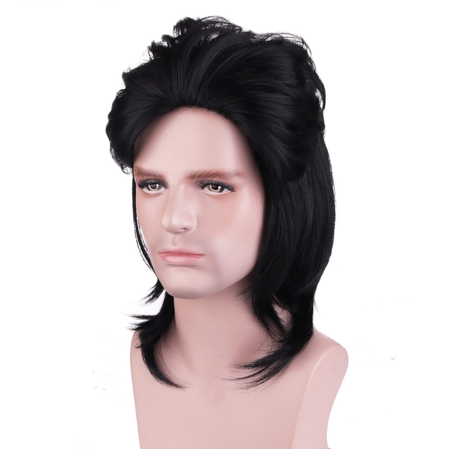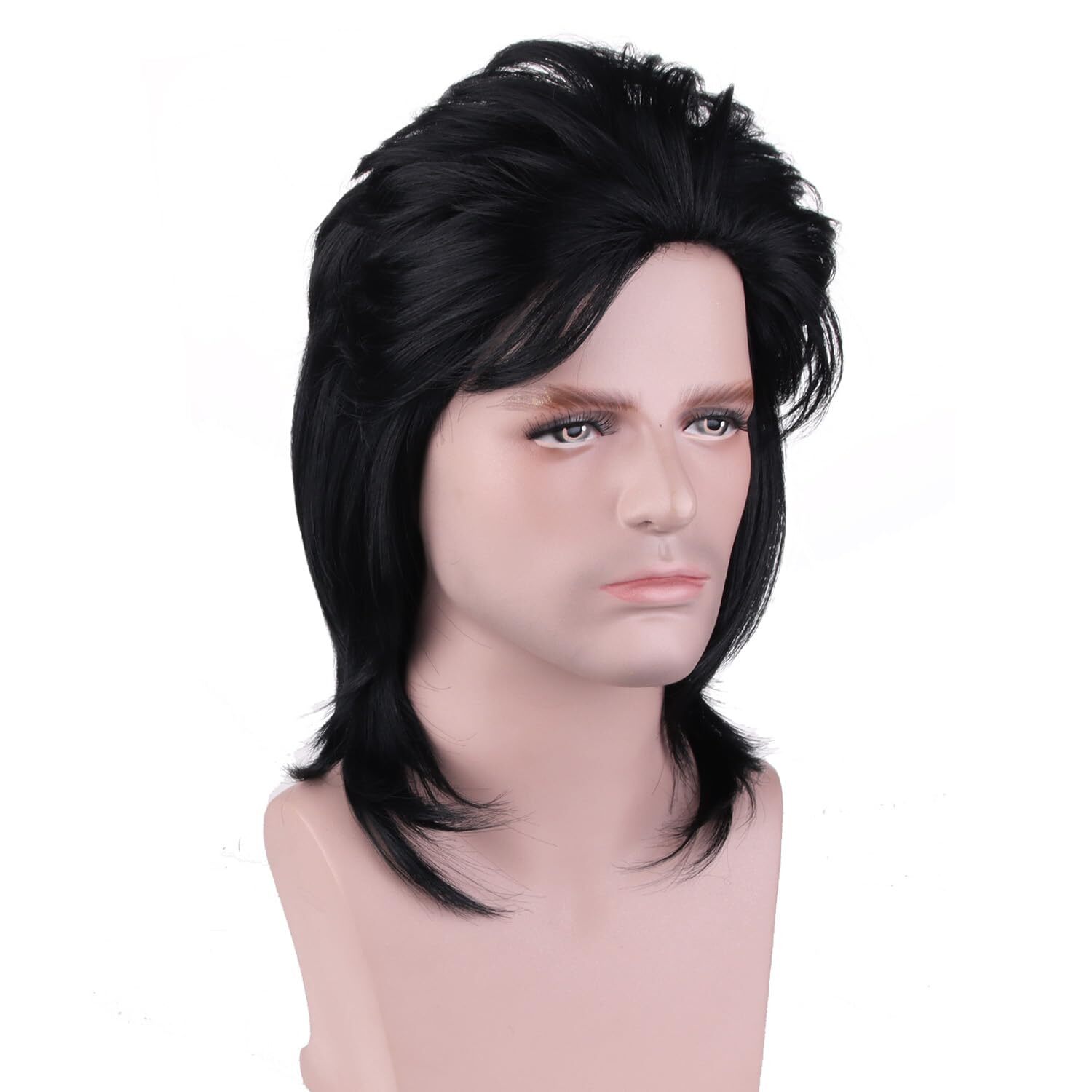 16 Inches Mullet Wigs for Men 80s Wig Black Rock Wigs Costumes Fancy Party Wi...