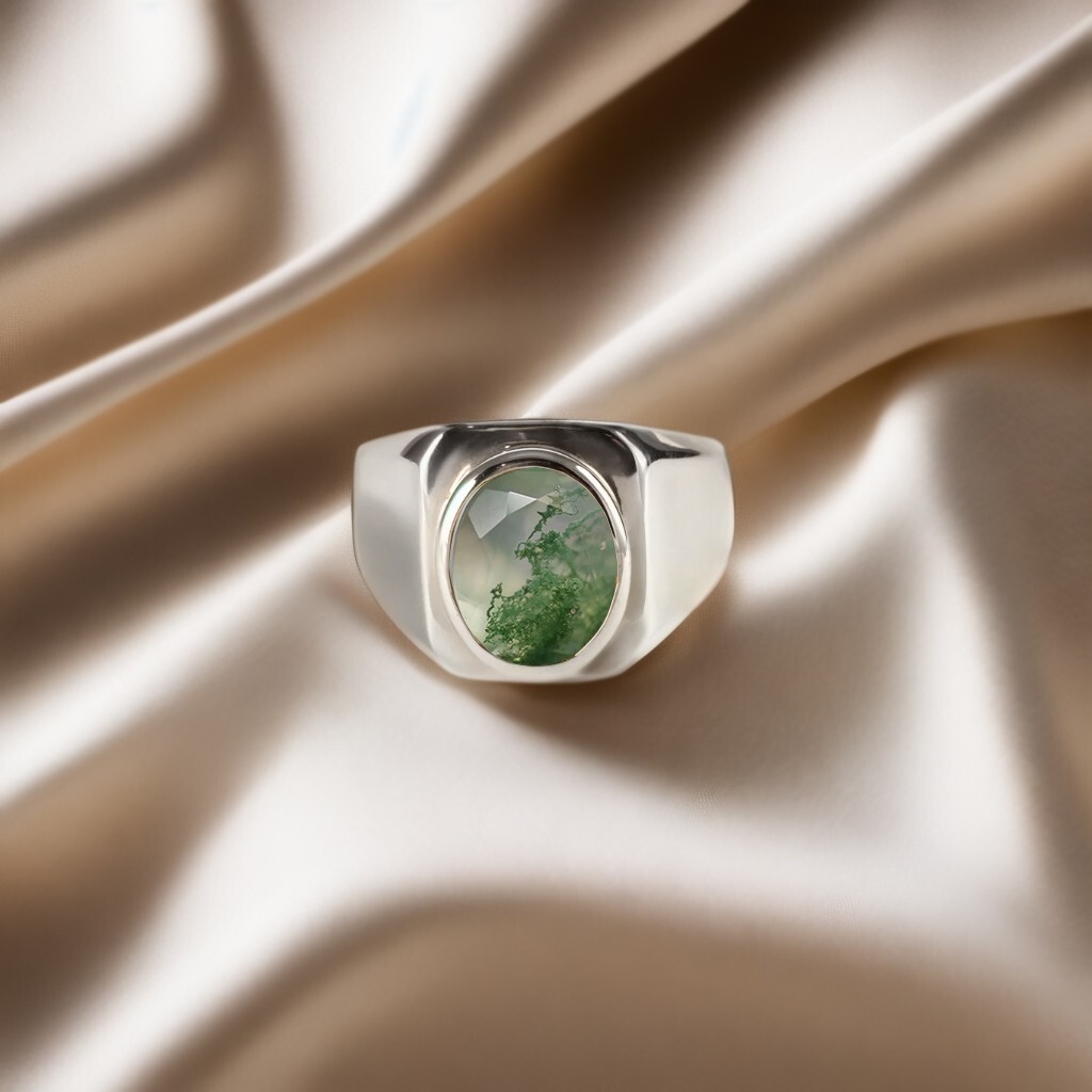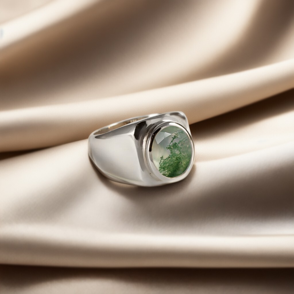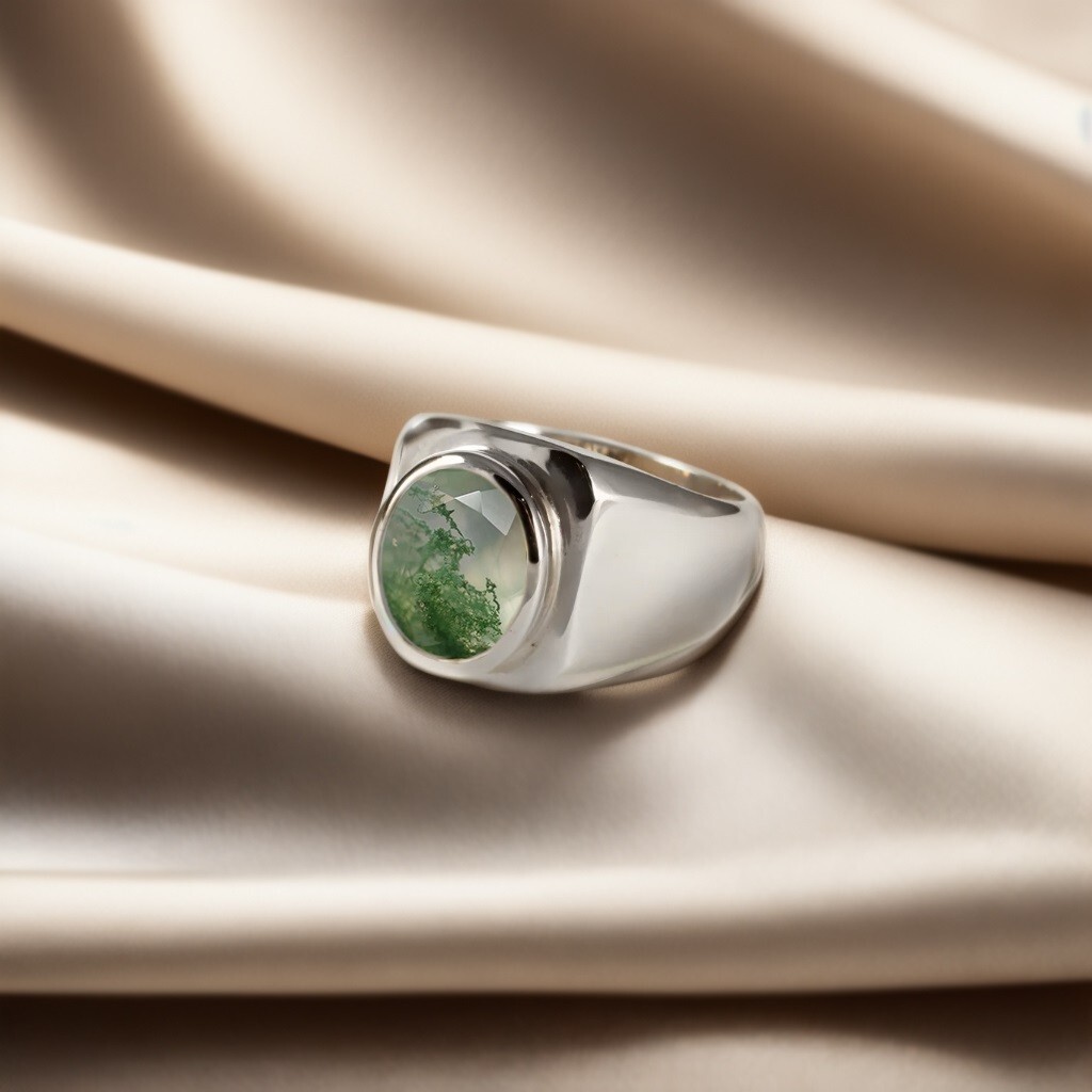 Green Moss Agate Ring 925 Sterling Silver Handmade Gemstone Jewelry