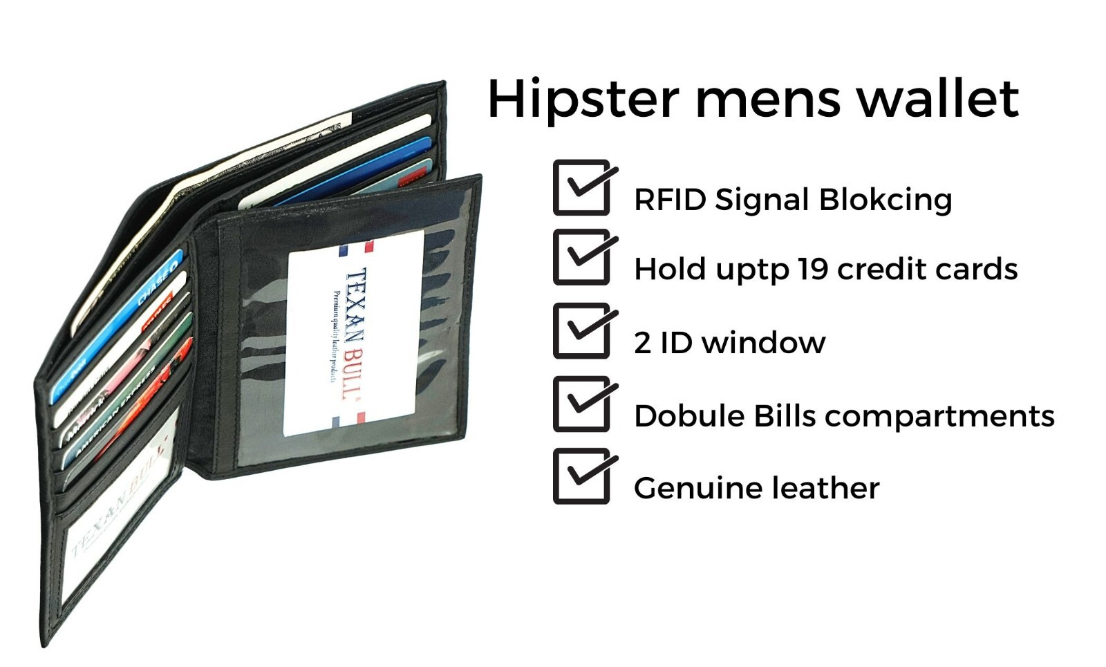 Men's Genuine Leather Bifold Wallet Hipster Credit Card ID Holder RFID Blocking