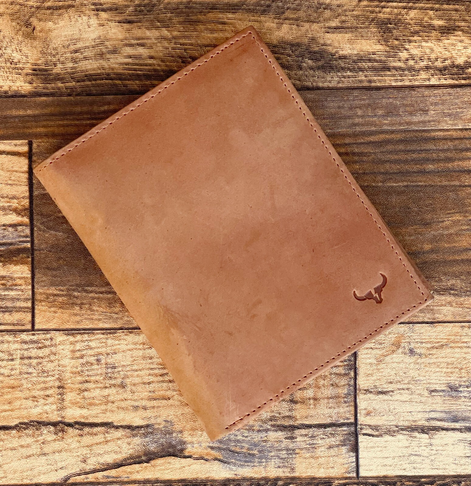 Men's Hunter Tan Leather Bifold Slim Wallet Hipster Cowhide Credit Card ID New