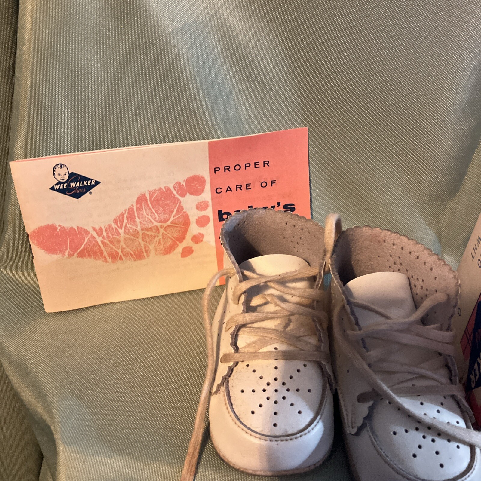 Wee Walker Baby Shoes, White High Top, with Box. Vintage Instructions Size 0