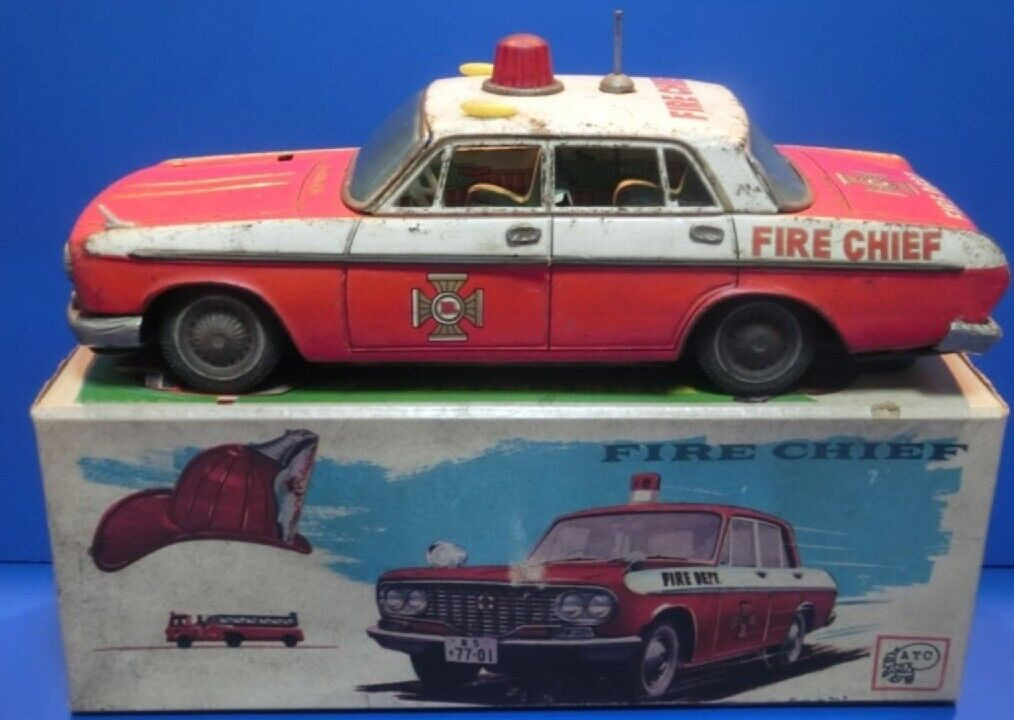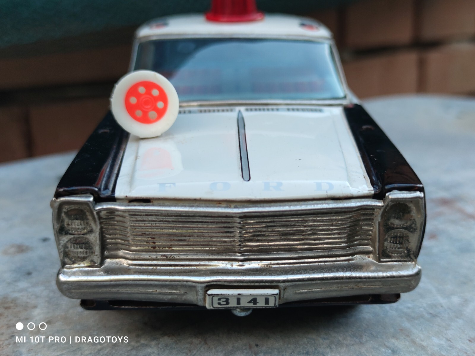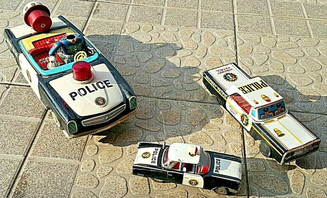 как выглядит VINTAGE POLICE P.D. DIRECTORY FRICTION TIN TOY CAR 60s CHINA SIRENS SPINNING фото