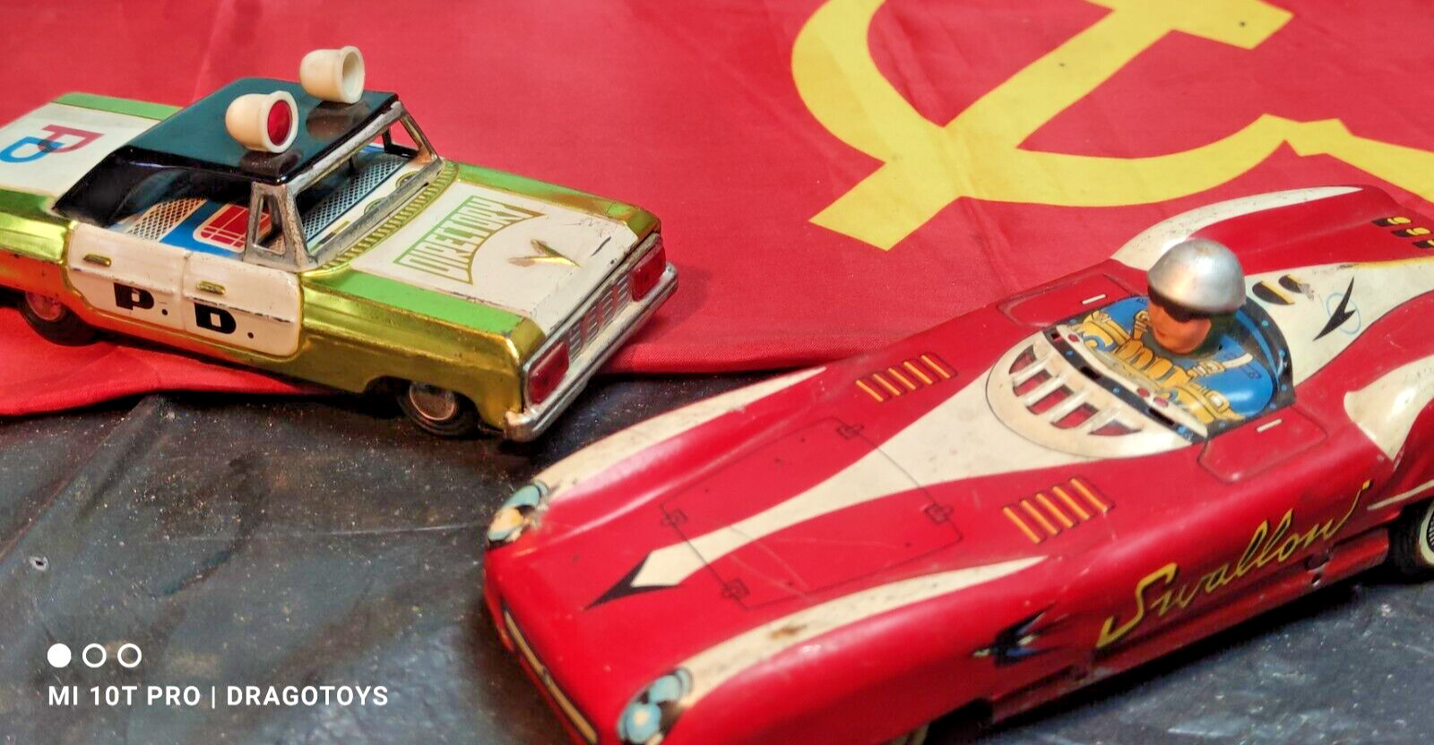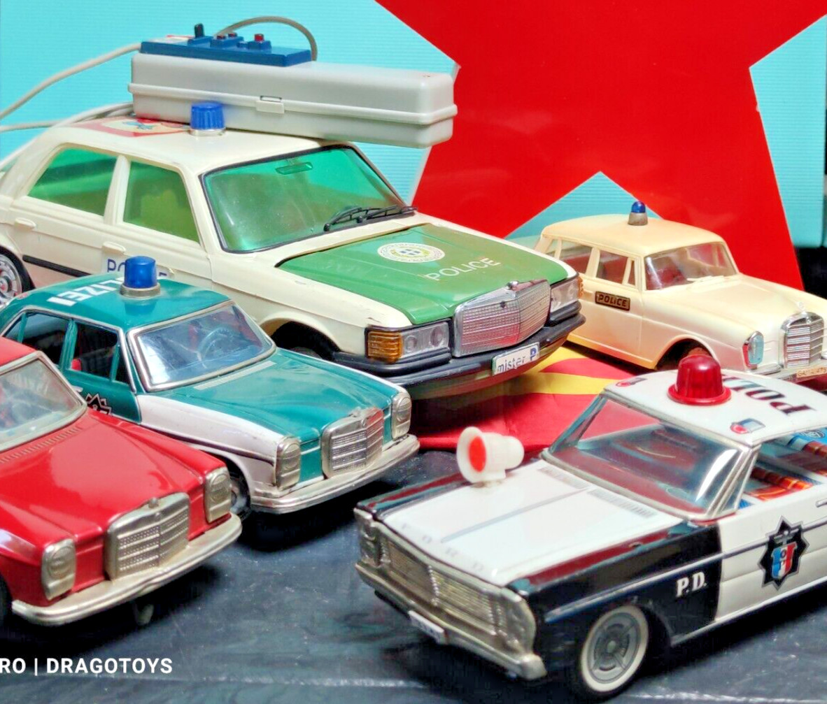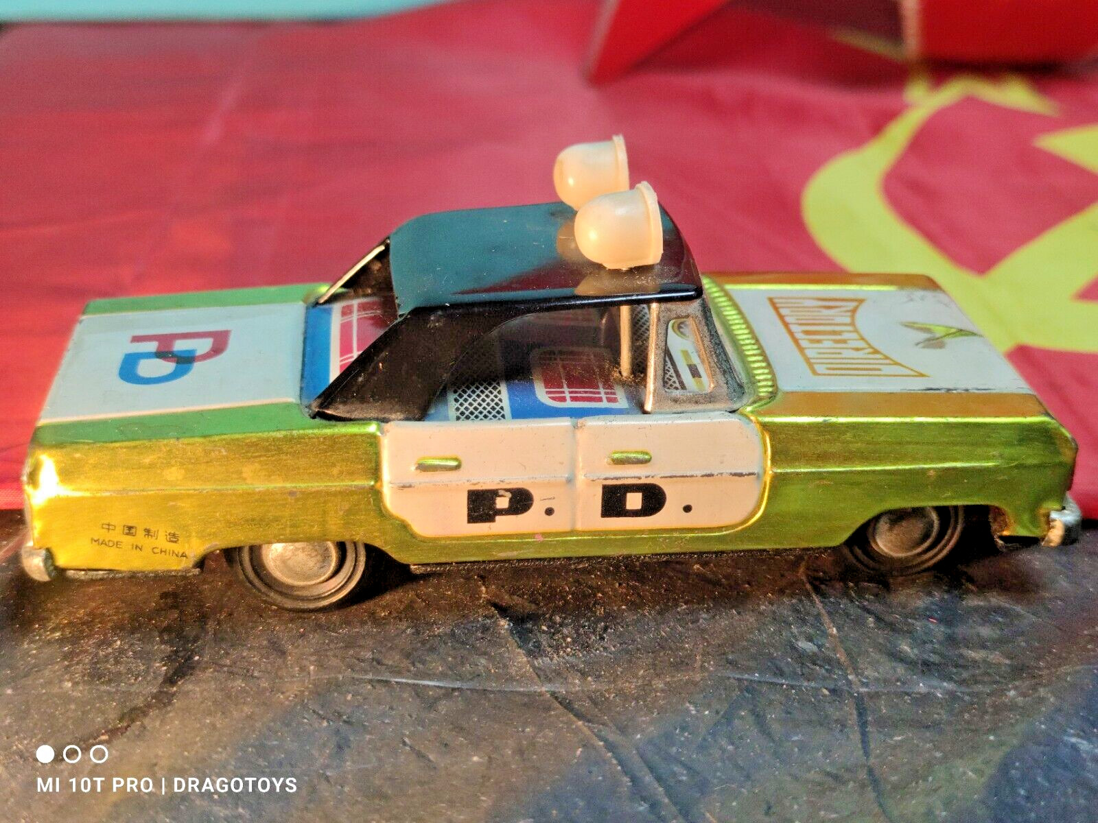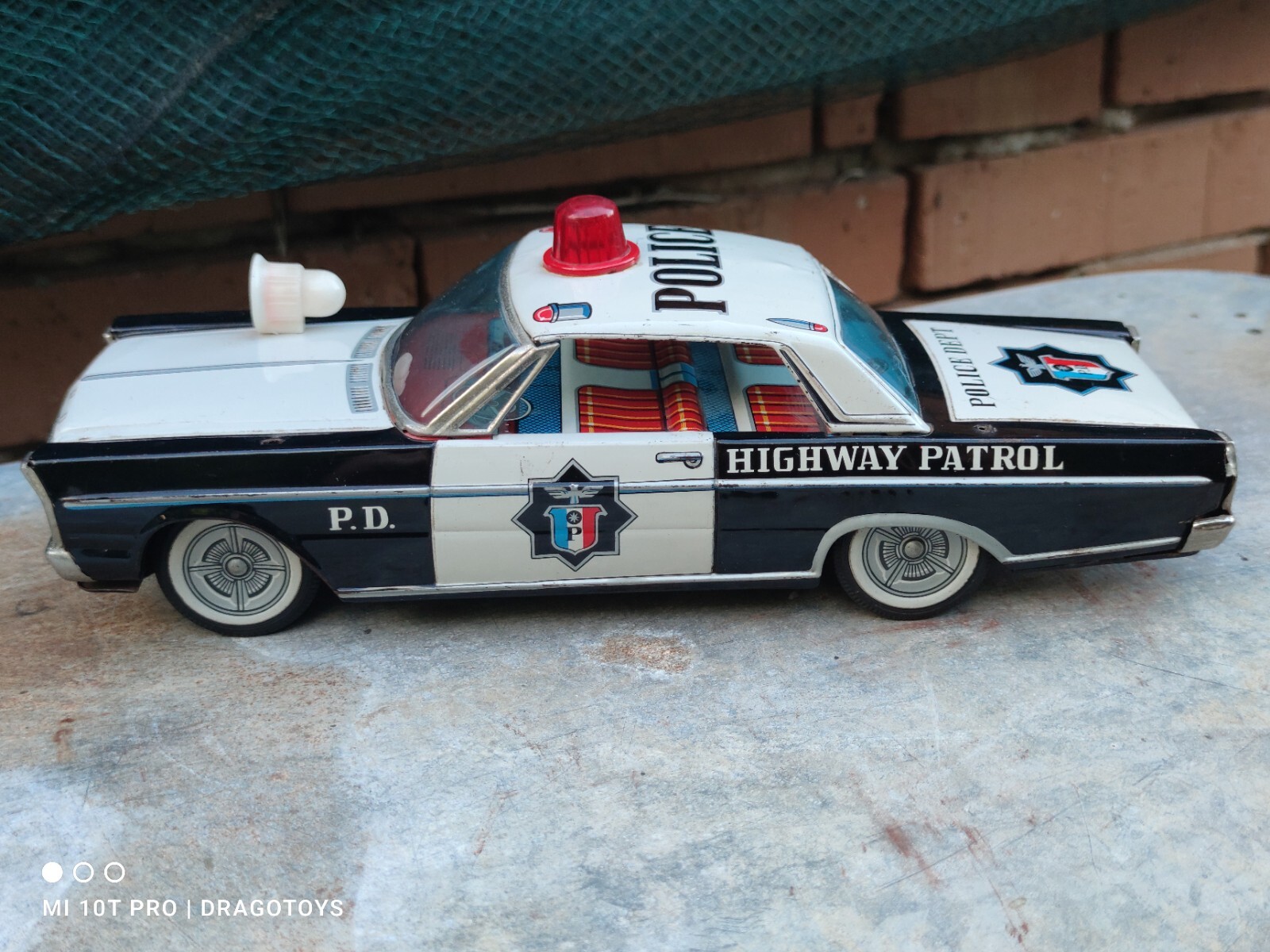 VINTAGE POLICE P.D. DIRECTORY FRICTION TIN TOY CAR 60's CHINA SIRENS SPINNING