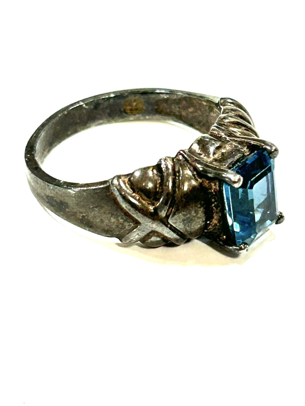 как выглядит VINTAGE PRETTY BLUE GLASS STERLING SILVER RING SIZE 6-7 фото