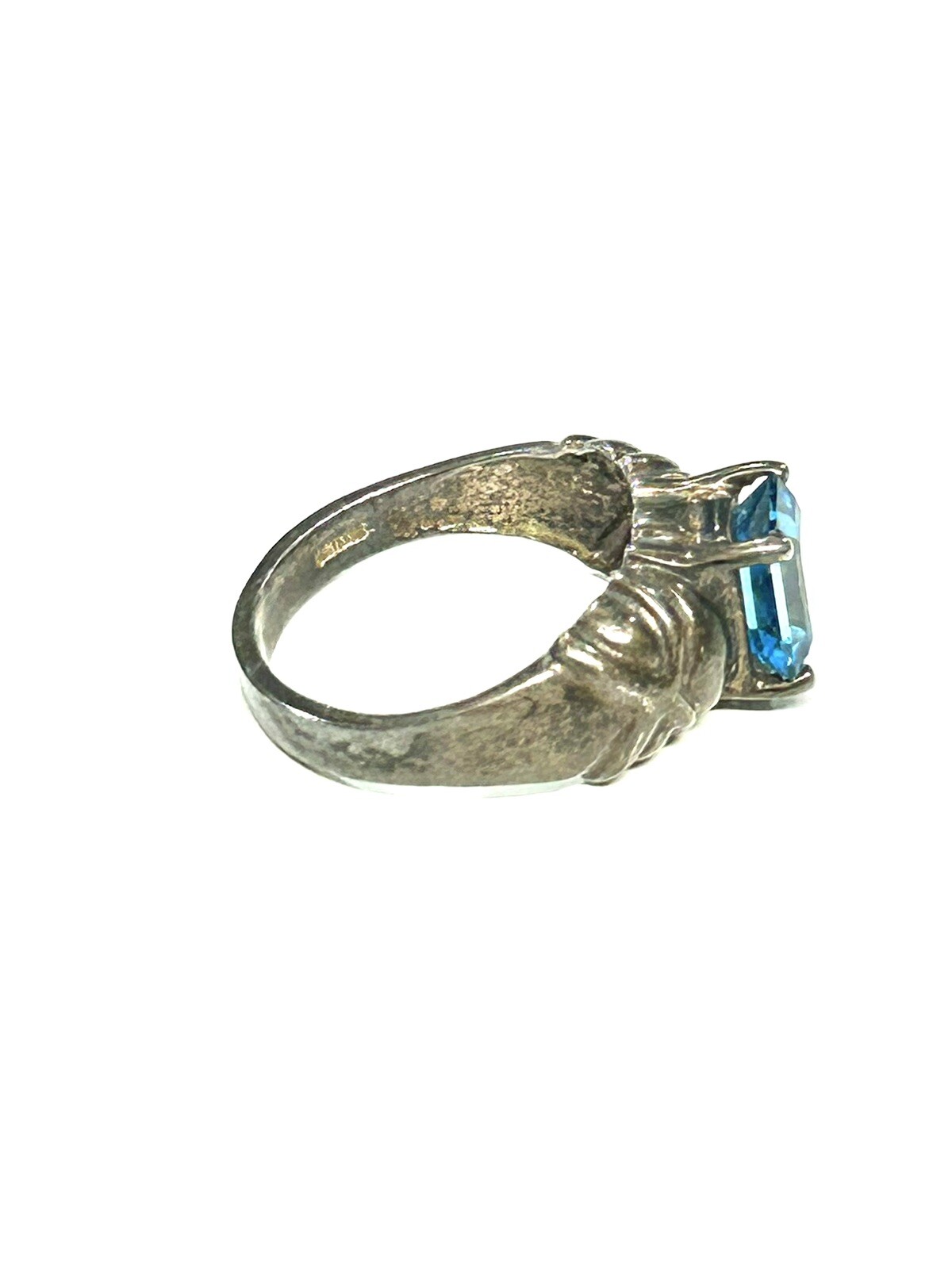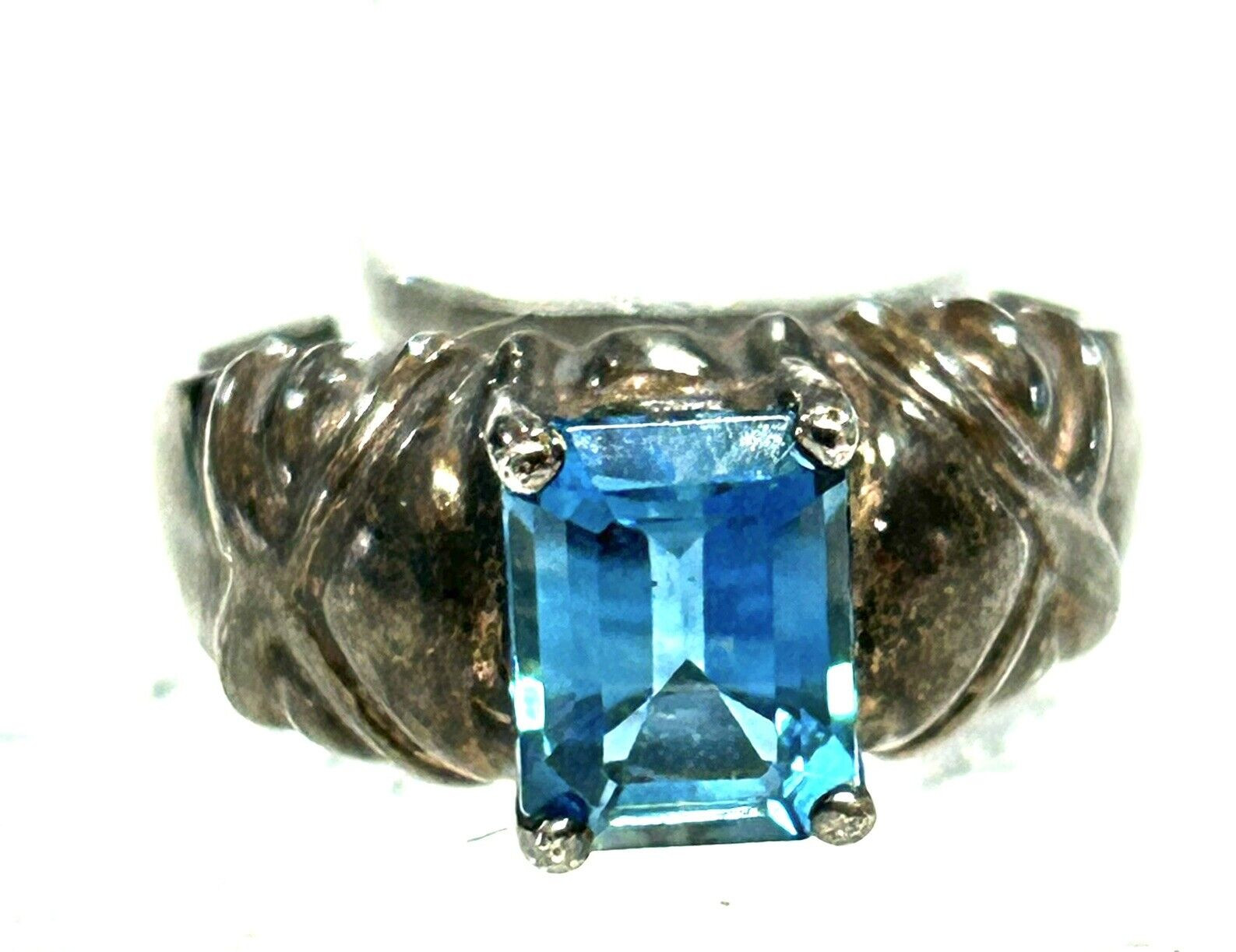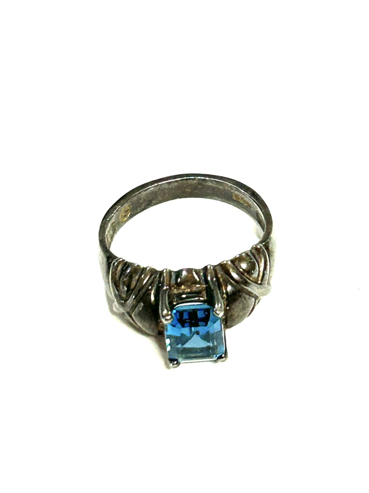 VINTAGE PRETTY BLUE GLASS STERLING SILVER RING SIZE 6-7