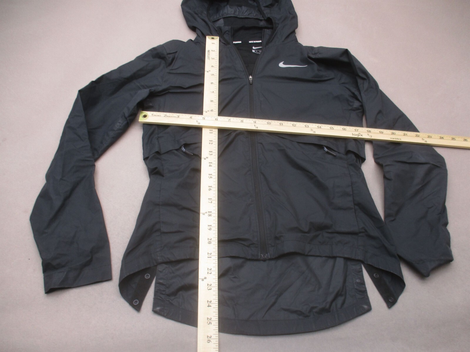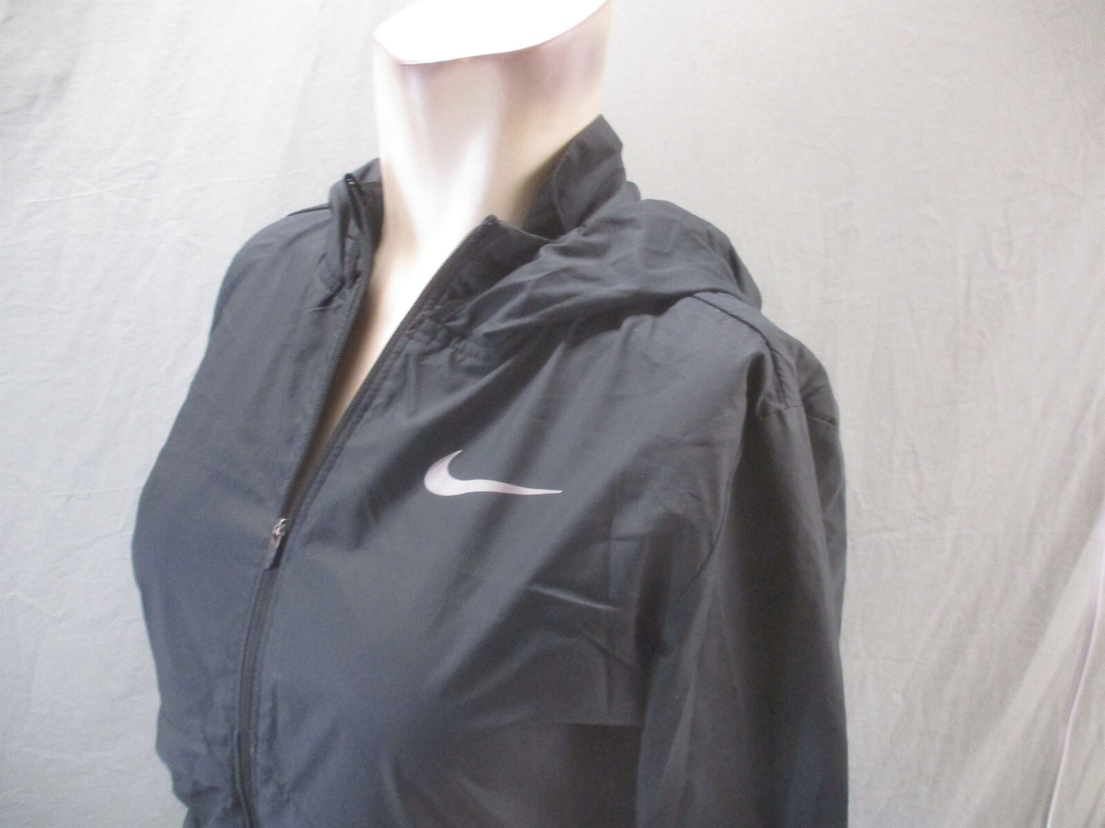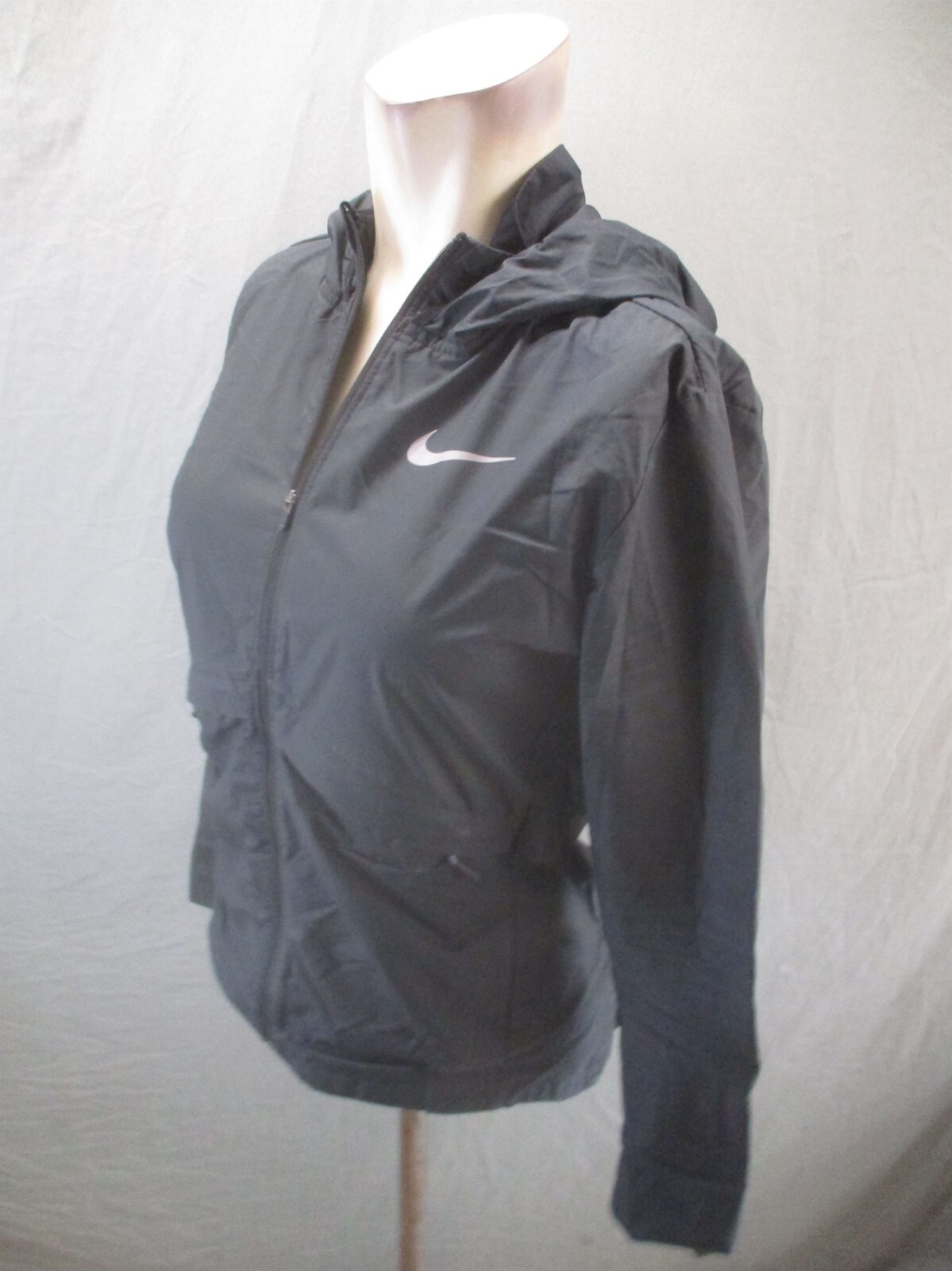 NIKE Size XS Womens Black Full Zip Pocket Snap Hood Windproof Running Jacket 915