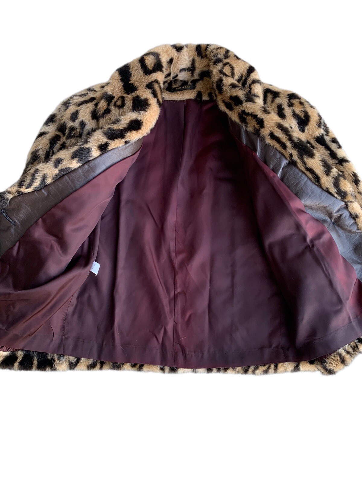 Vintage Faux Fur Leopard Short Coat With Satin Lining Made In USA. Size 8