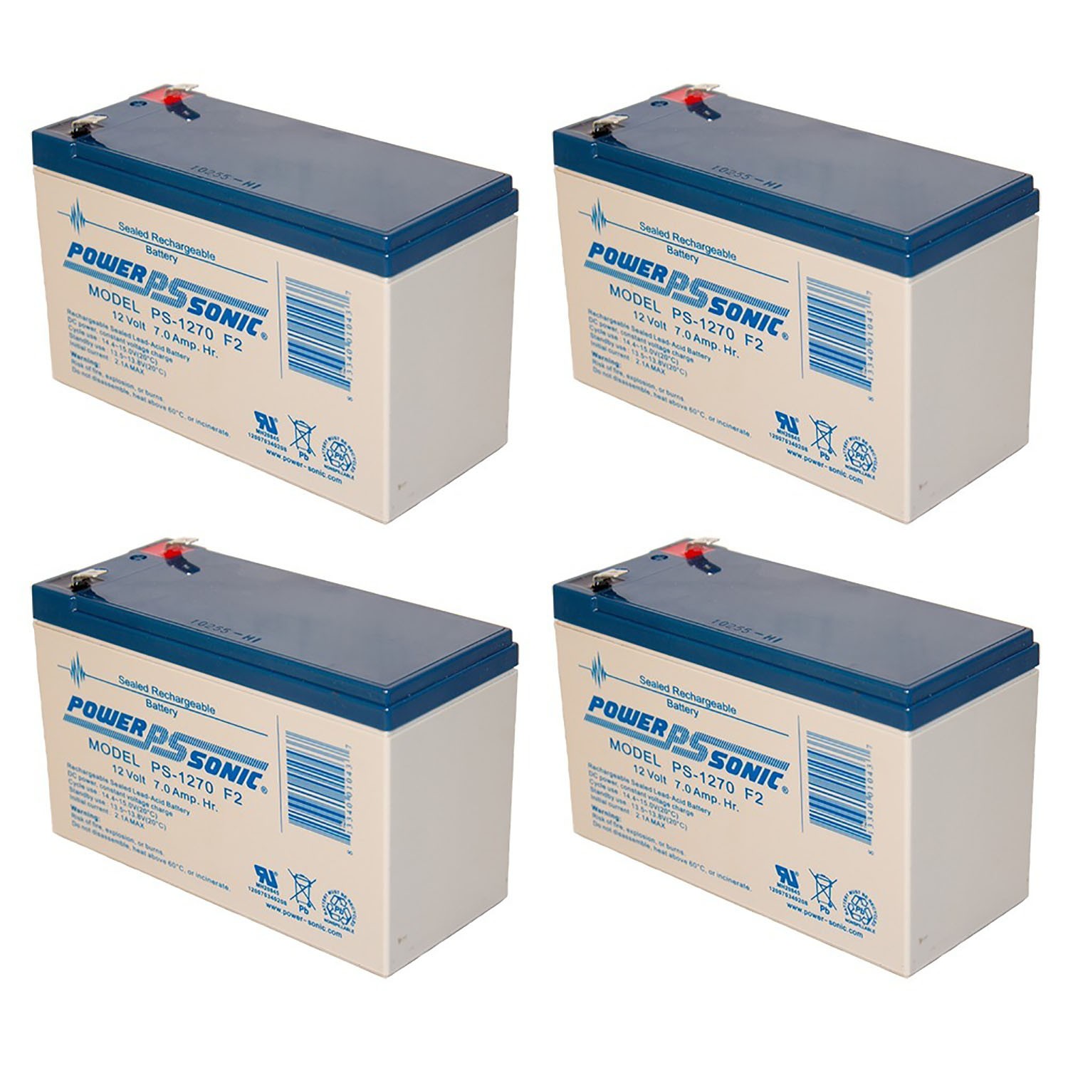 Power-Sonic 12V, 7Ah, AGM, F2 Terminal, Replaces Best Power BAT-103 - 4 Pack