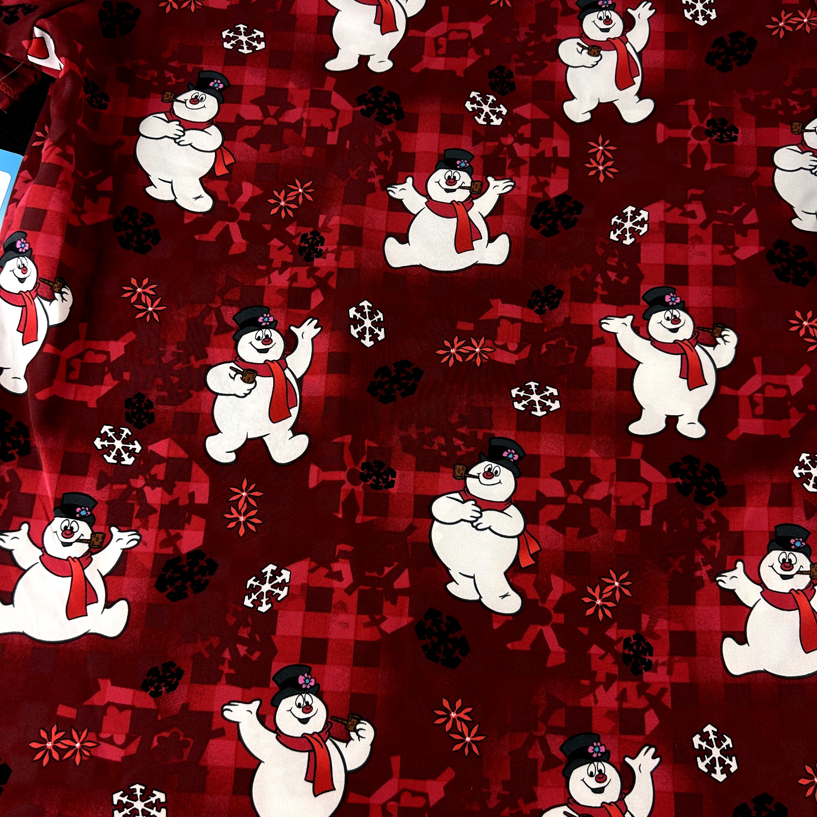 Scrubstar Women's Frosty the Snowman Jolly Red Plaid V-Neck Print Scrub Top