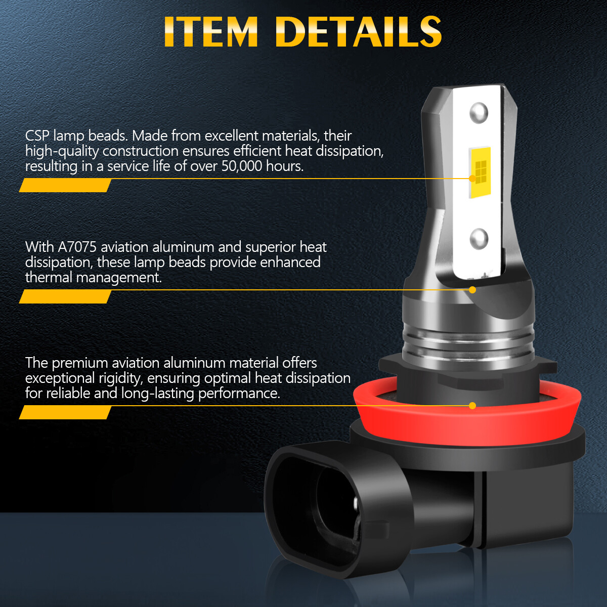 CSP LED Fog Light Bulbs H11 High Power Driving Lamps 6000K White light Bulbs Kit