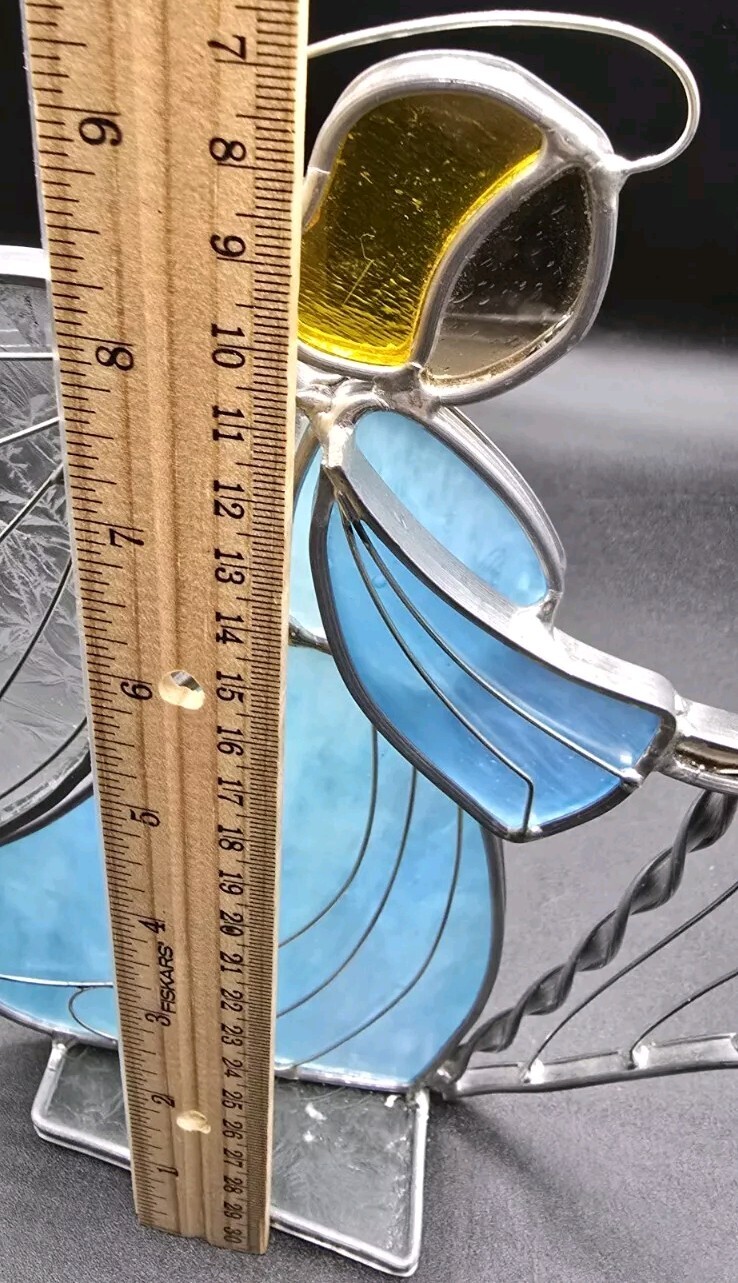 как выглядит Vintage Stained Glass Angel Iridescent Standing Figurine фото