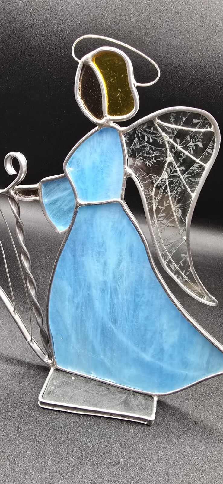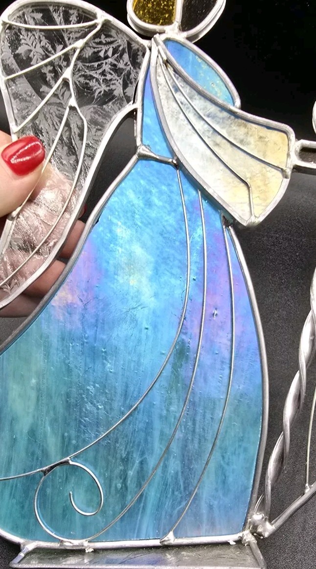 • Vintage Stained Glass Angel Iridescent Standing Figurine