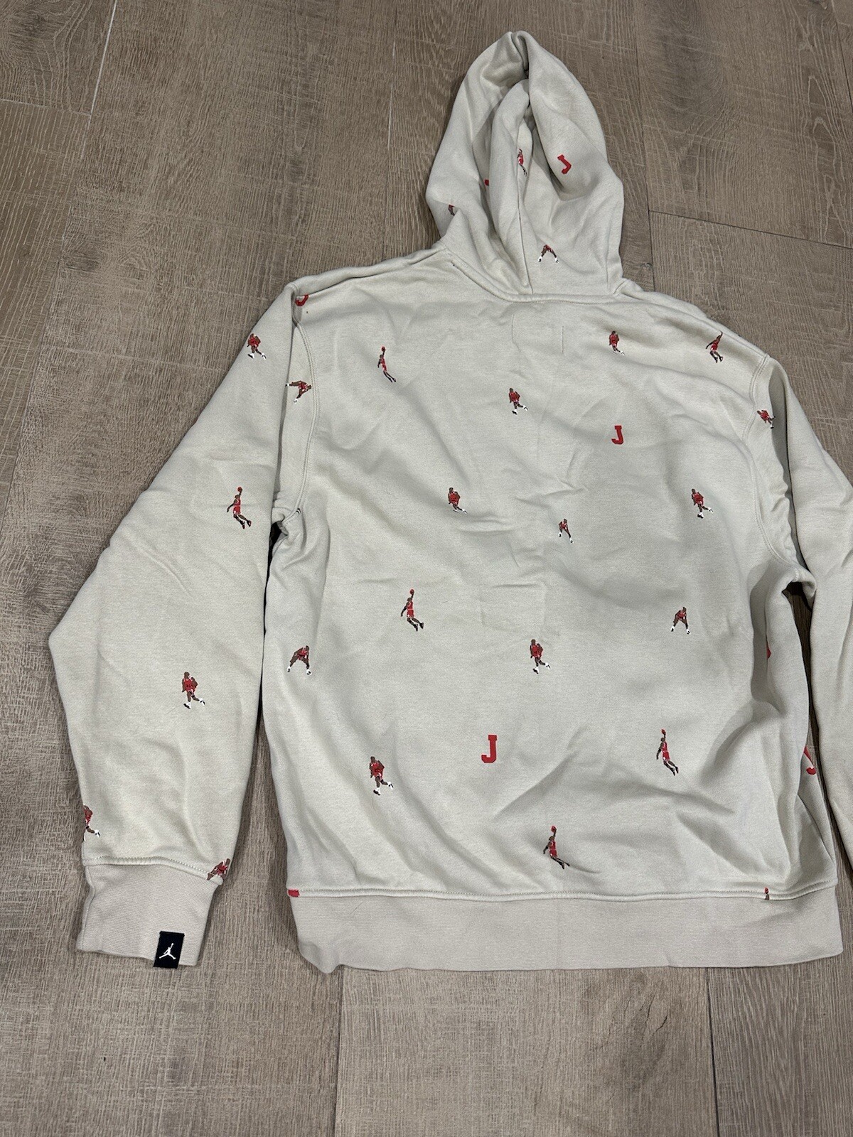 как выглядит JORDAN Mens Essentials Fleece Pullover Hoodie Beige Size MEDIUM фото