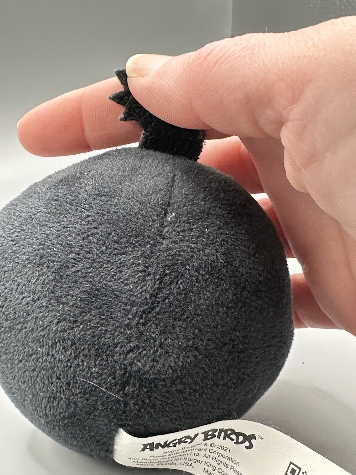ANGRY BIRDS 4 Plush Black Bomb Bird 2021 Burger King Kids Club Toy