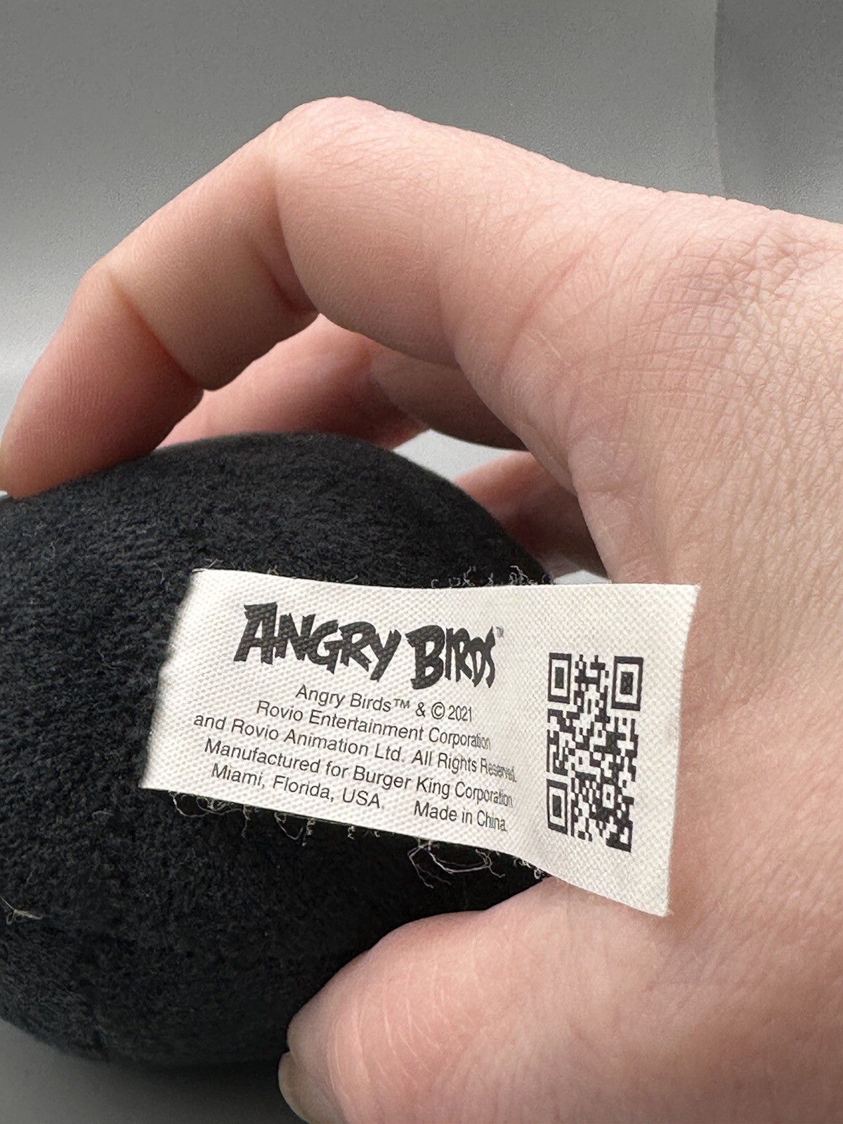 как выглядит ANGRY BIRDS 4" Plush Black Bomb Bird 2021 Burger King Kids Club Toy фото