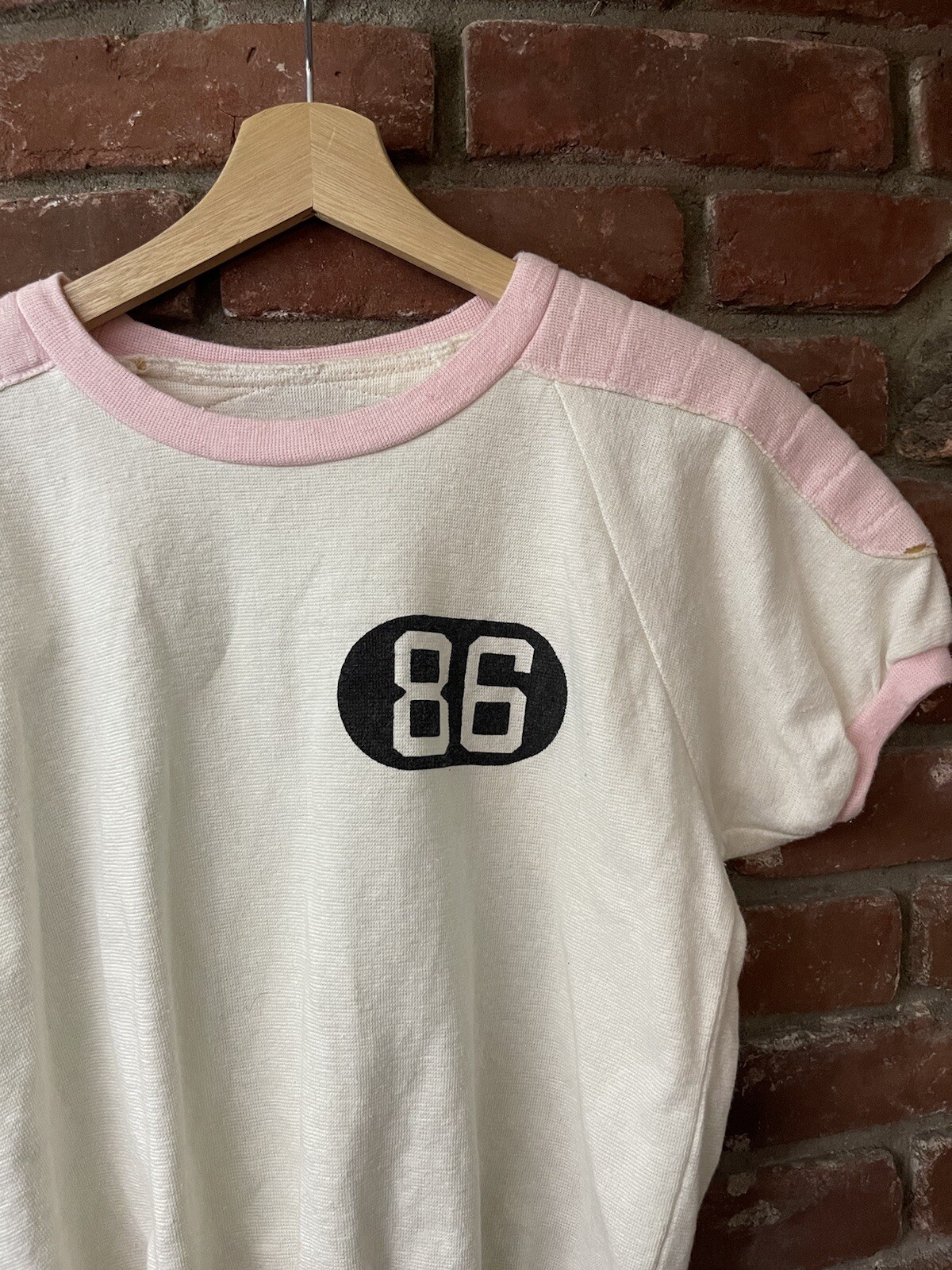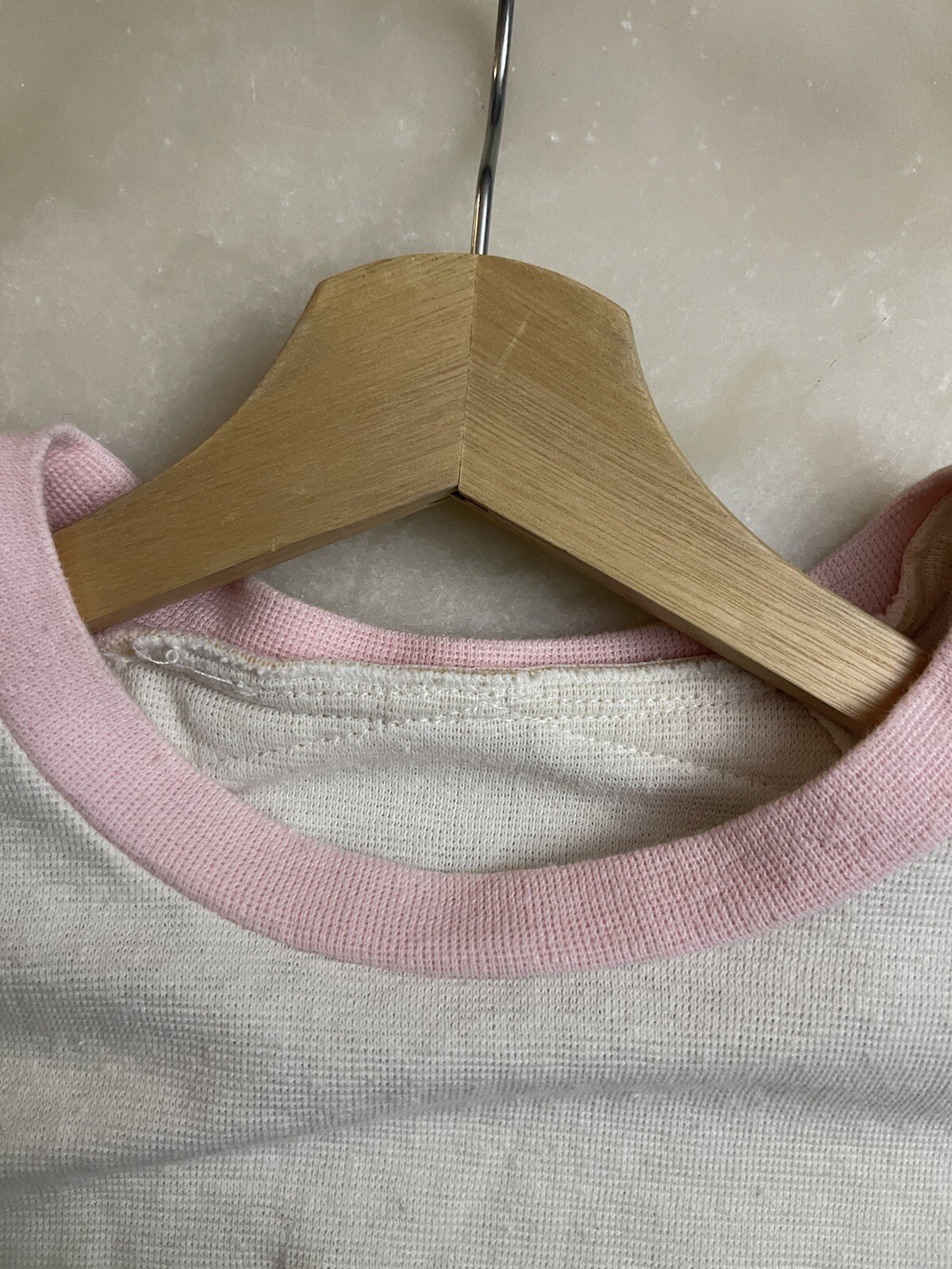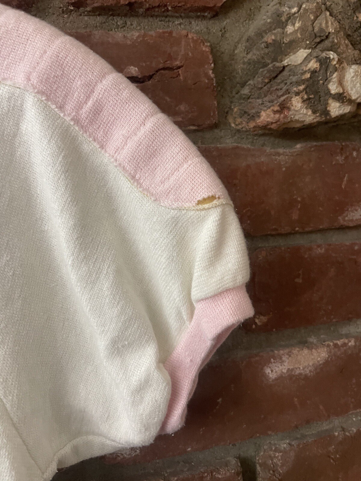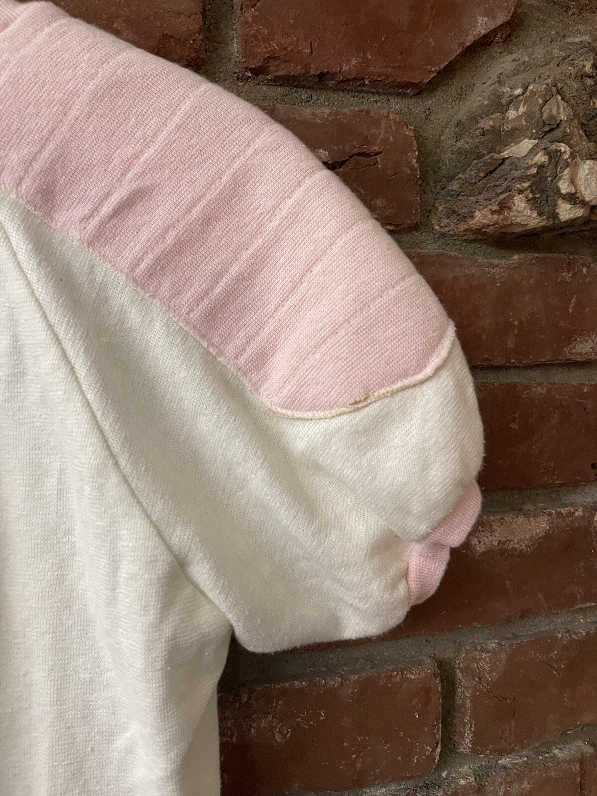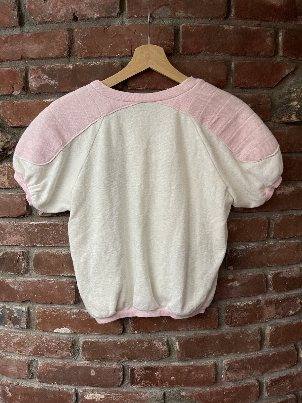 как выглядит Vintage 80s Short Sleeve Sweatshirt Small Two Tone White Pink Light Distrssed фото