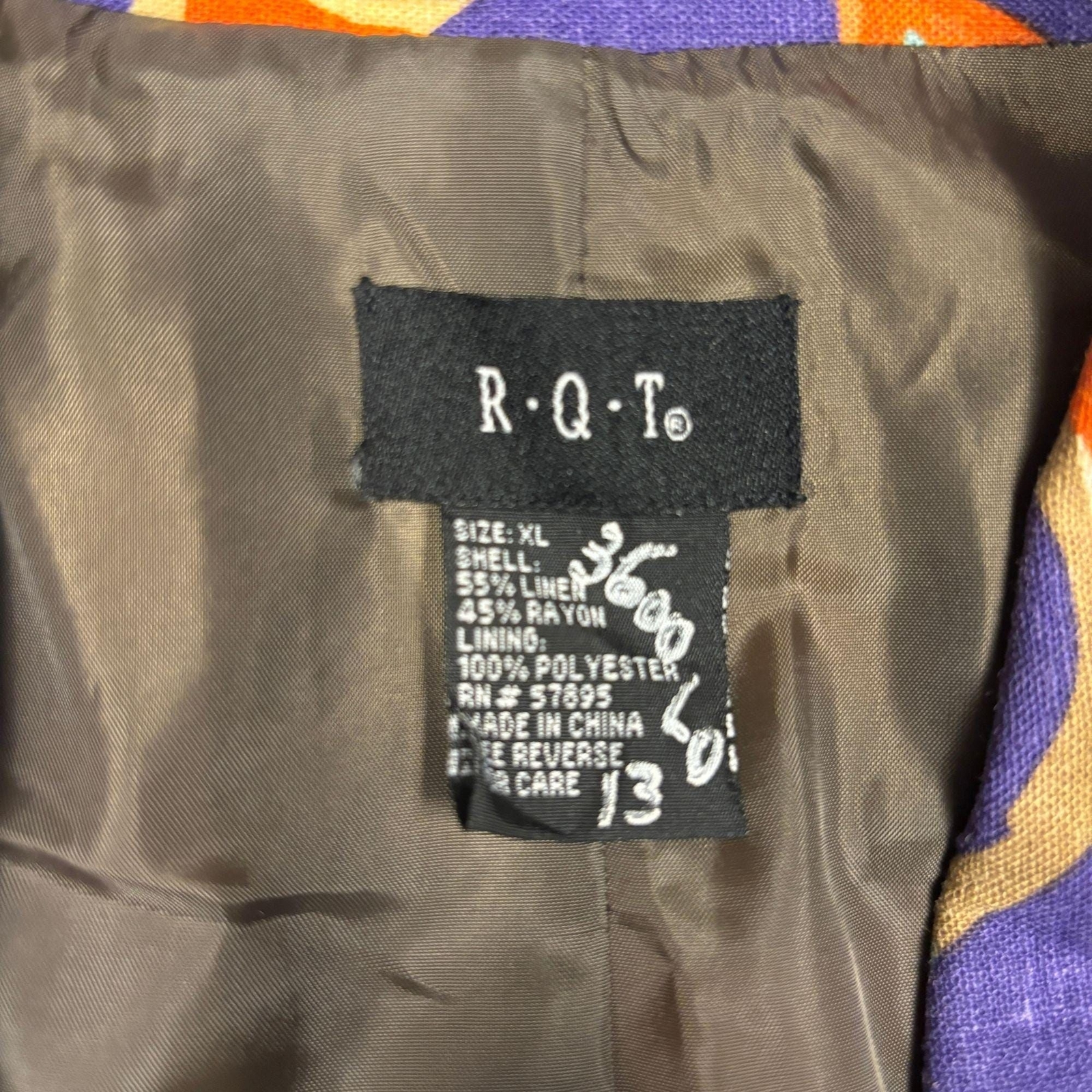 90s XL abstract blazer jacket by RQT, vintage red, purple yellow linen jacket