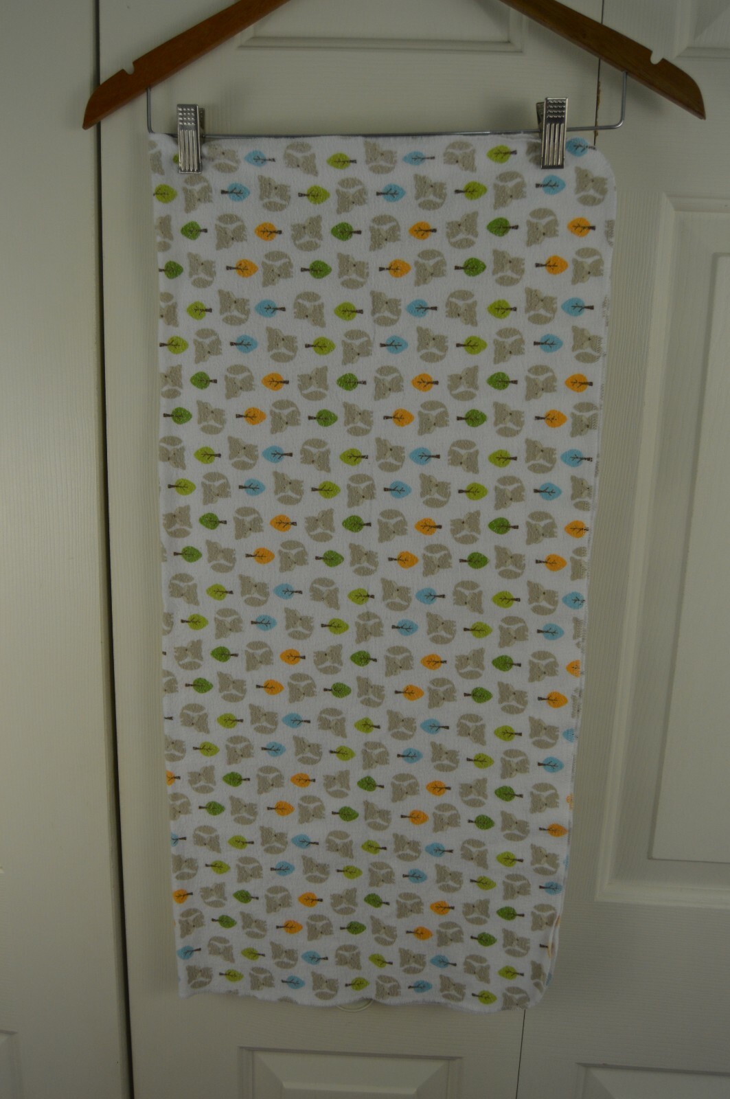 Just Born Fox Baby Receiving Blanket White Gray Flannel Blue Orange Green Tree
