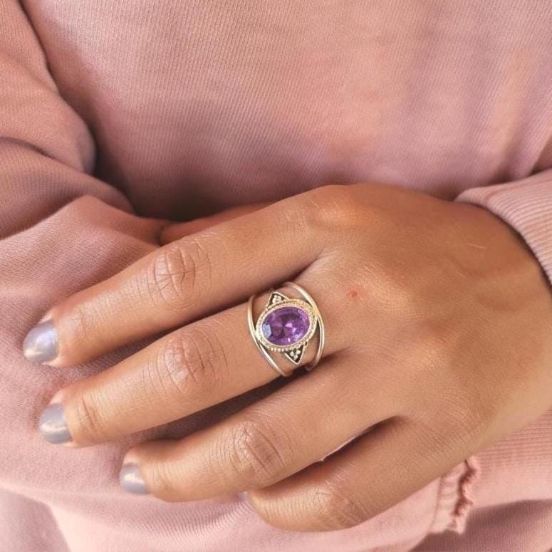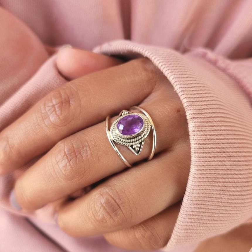 как выглядит Genuine Amethyst 925 Sterling Silver Oval Shaped Ring Hand Made Ships From USA фото