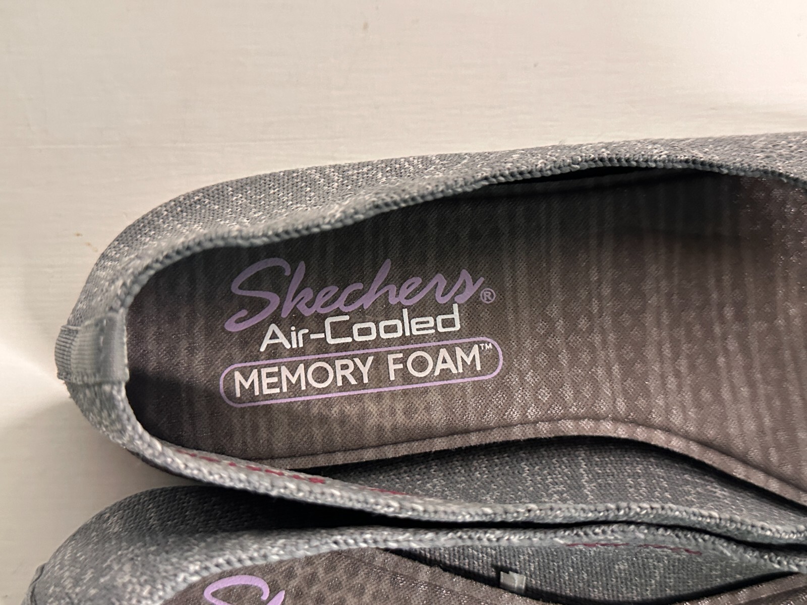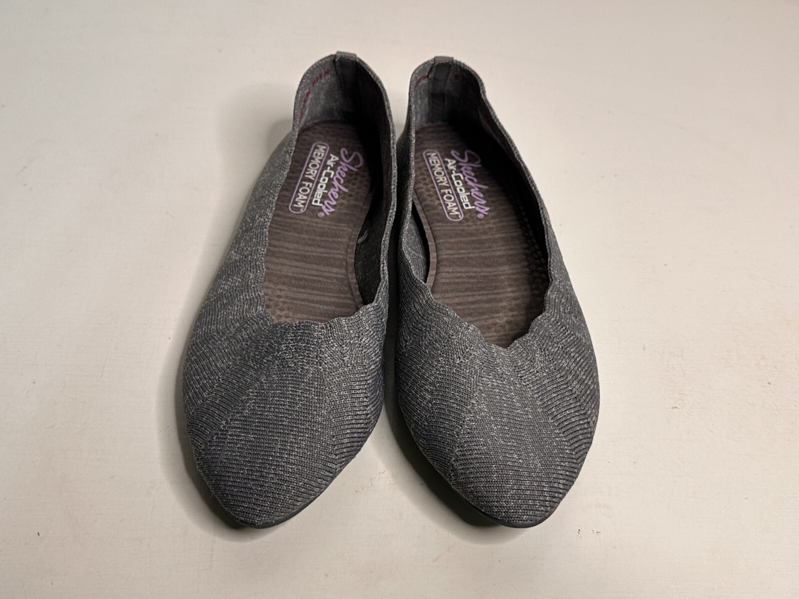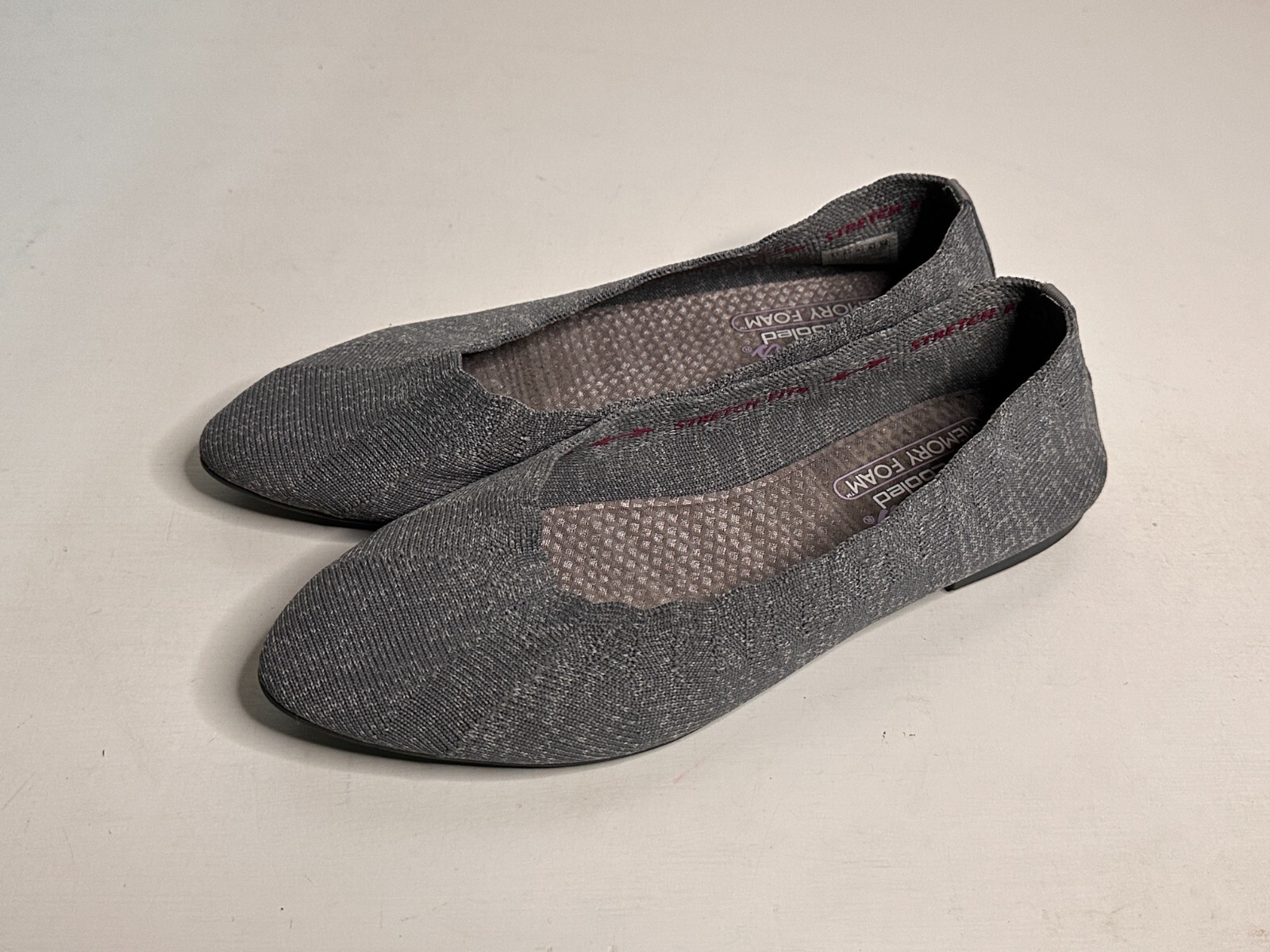 Skechers Cleo Bewitch Gray Memory Foam Stretch Ballet Flats Women Size 8.5