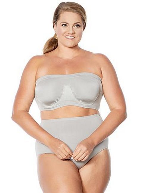 как выглядит Rhonda Shear Grey Underwire Removable Pads Strapless Bandeau Bra New фото