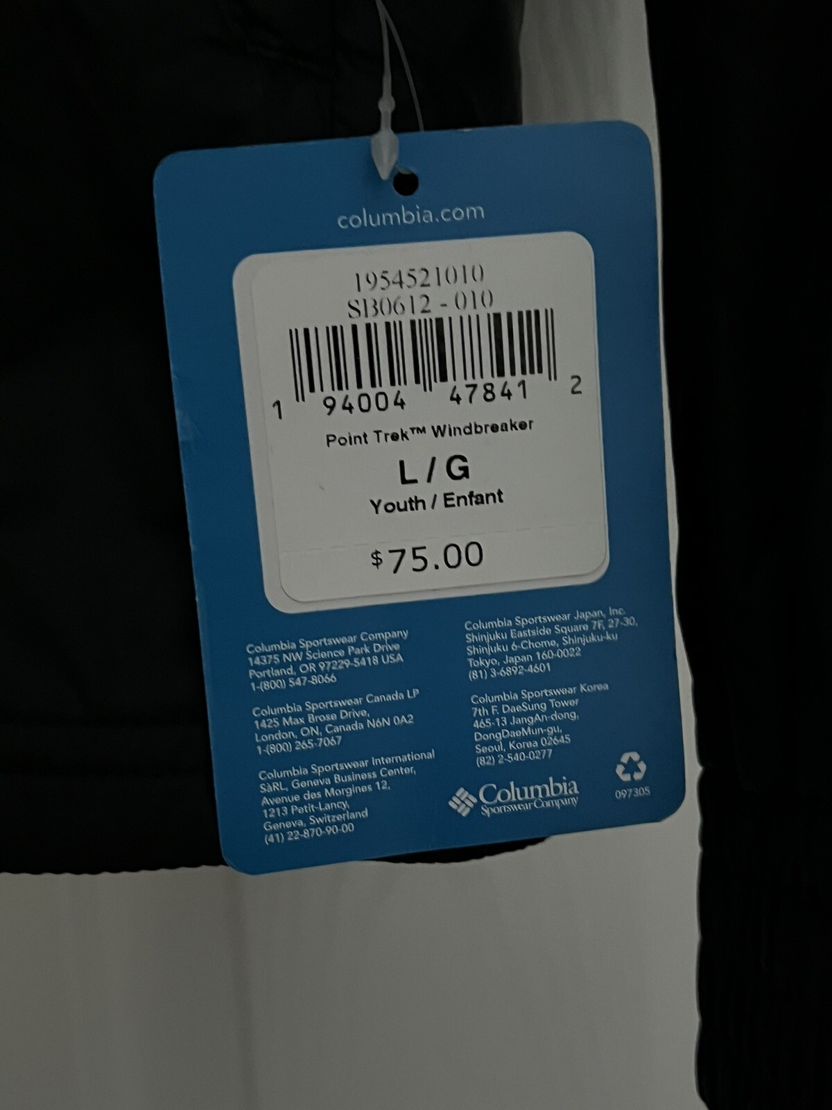 Columbia Point Trek Windbreaker Black Hooded Jacket Youth Size L MSRP 75 NWT