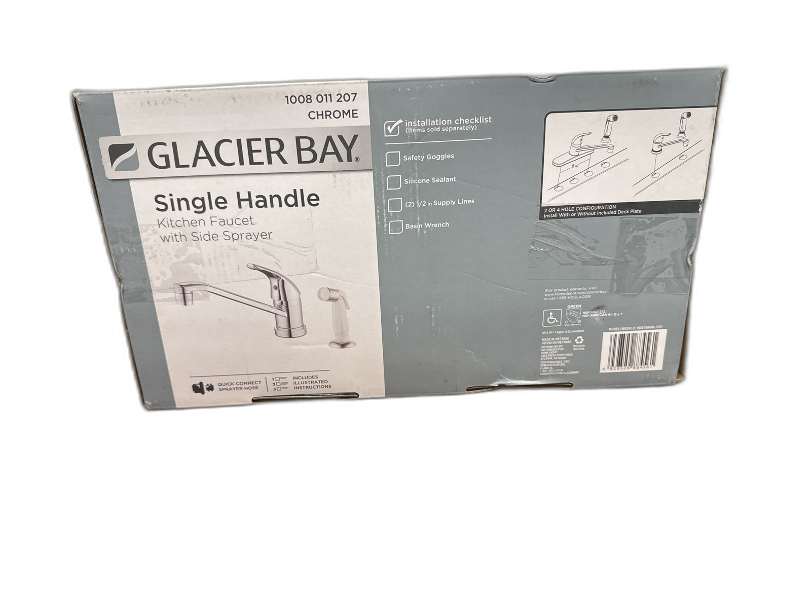 как выглядит Glacier Bay Single Handle Standard Kitchen Faucet in Chrome White Side Sprayer фото