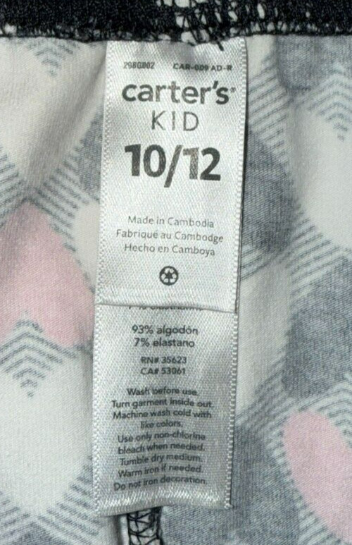 как выглядит CARTERS KID: Girls Black Pants w/ White Pink Hearts, Size 10/12 фото