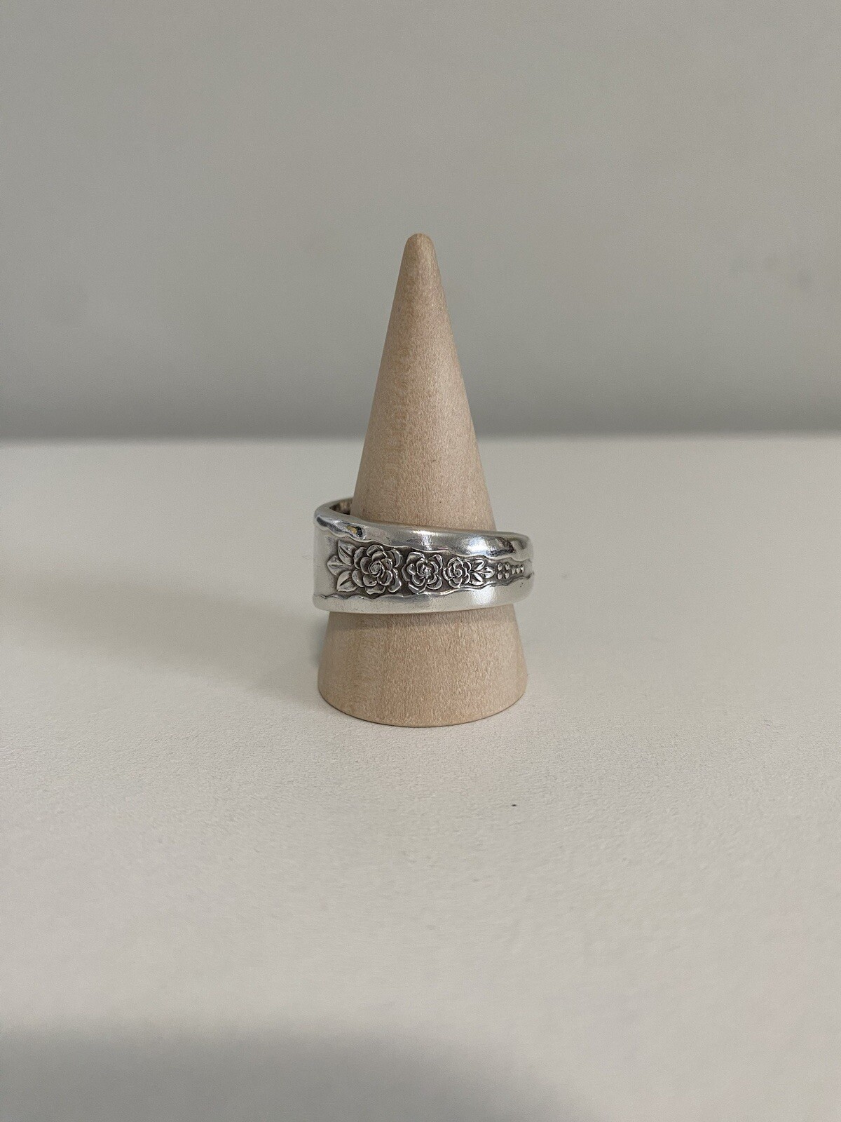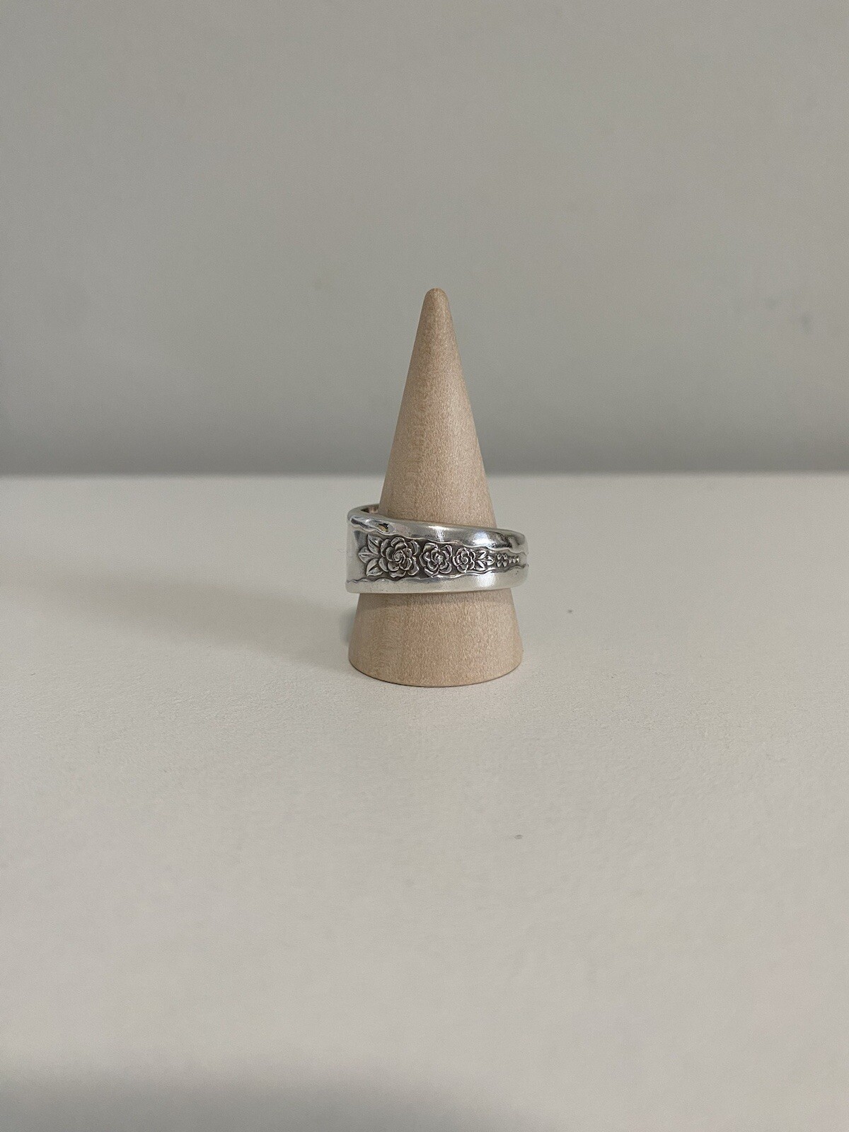 Floral, Rose, Silver Plated Handmade Spoon Ring Size US 11