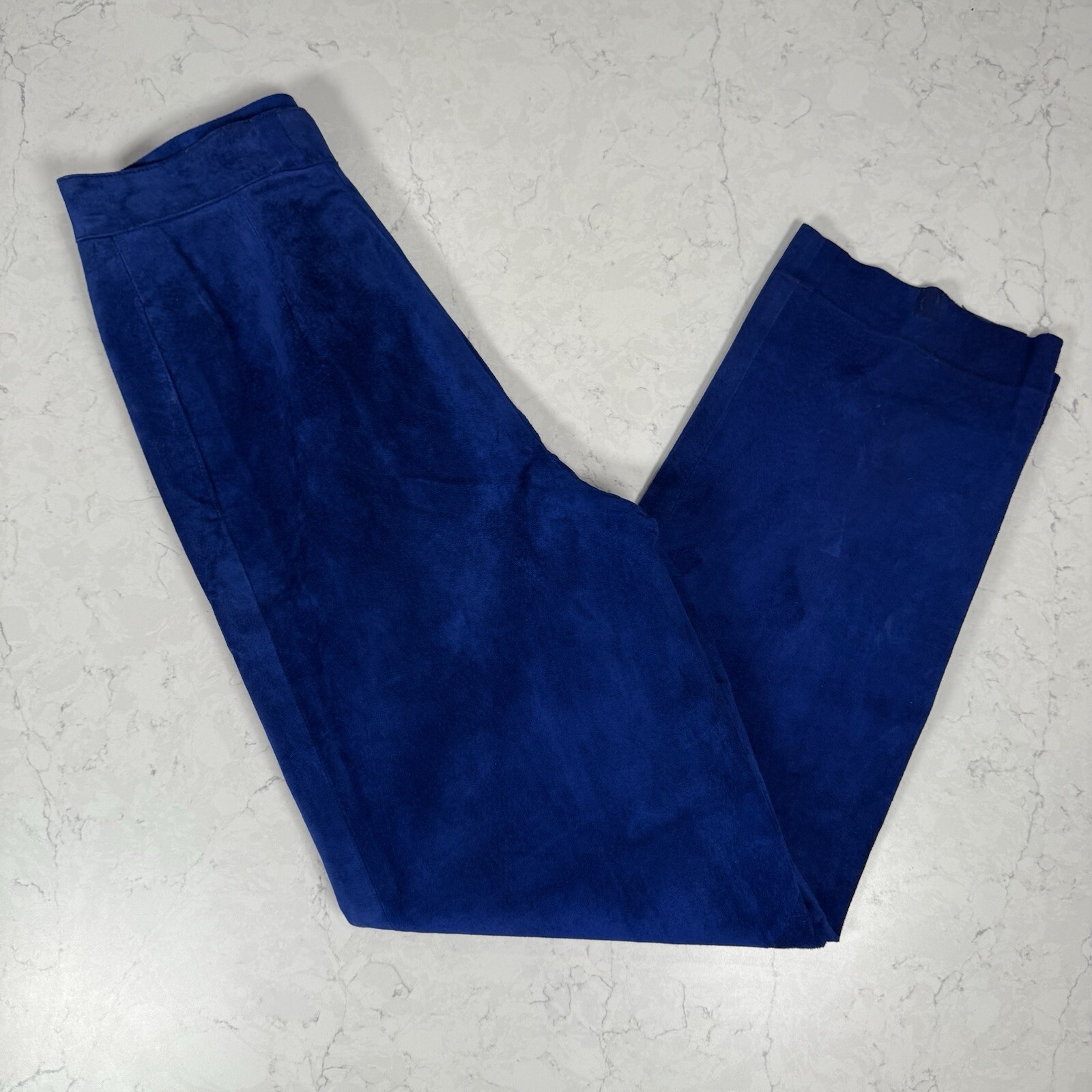 Vtg Neiman Marcus Womens High Rise Blue Pig Suede Leather Lined Pants Size 8
