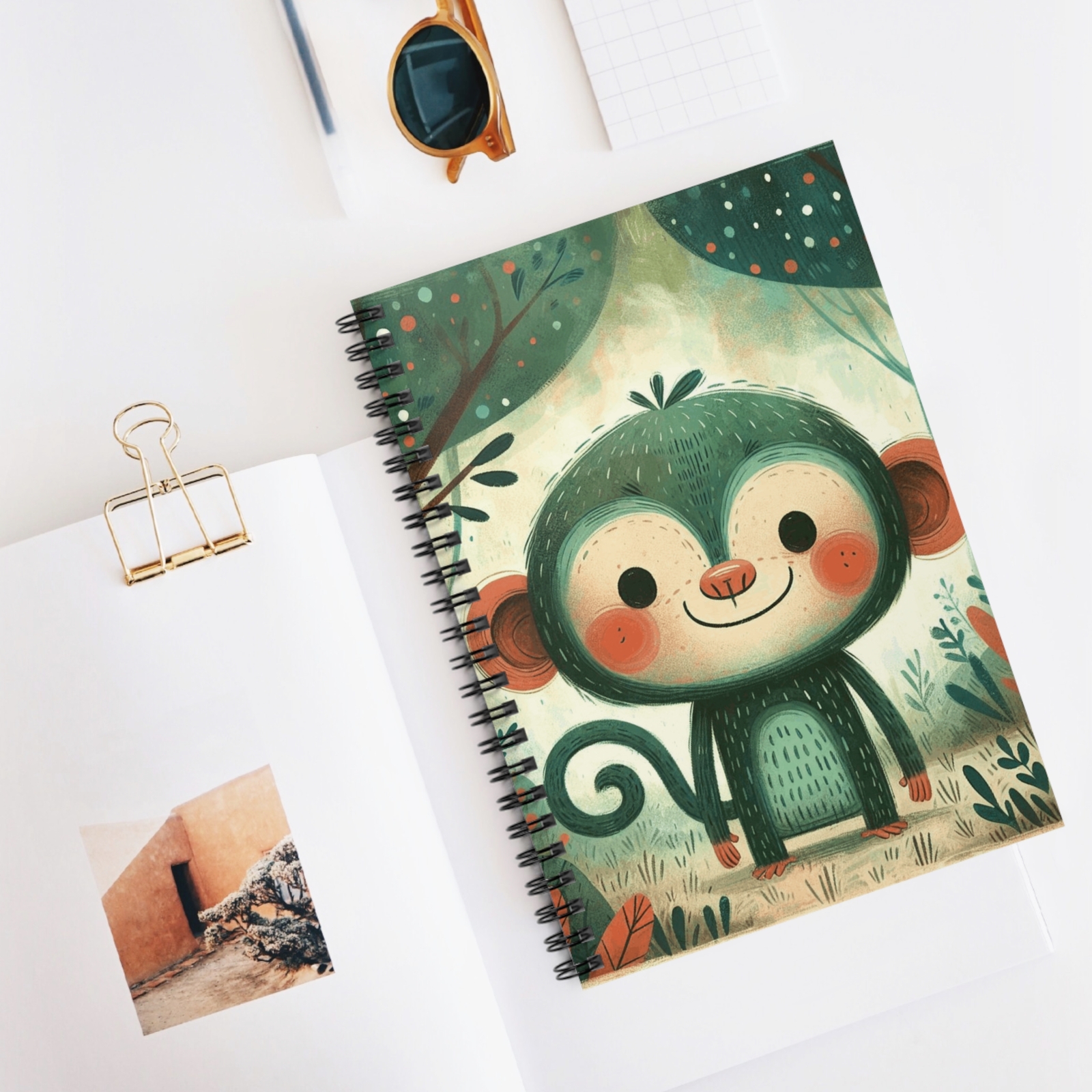 Spiral Notebook Ruled Line Monkey in Children's Book Illustration Style 3 Gift