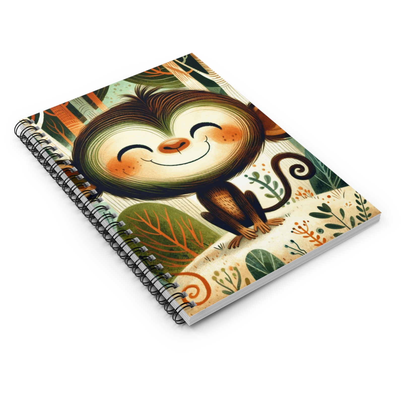 Spiral Notebook Ruled Line Monkey in Children's Book Illustration Style 7 Gift