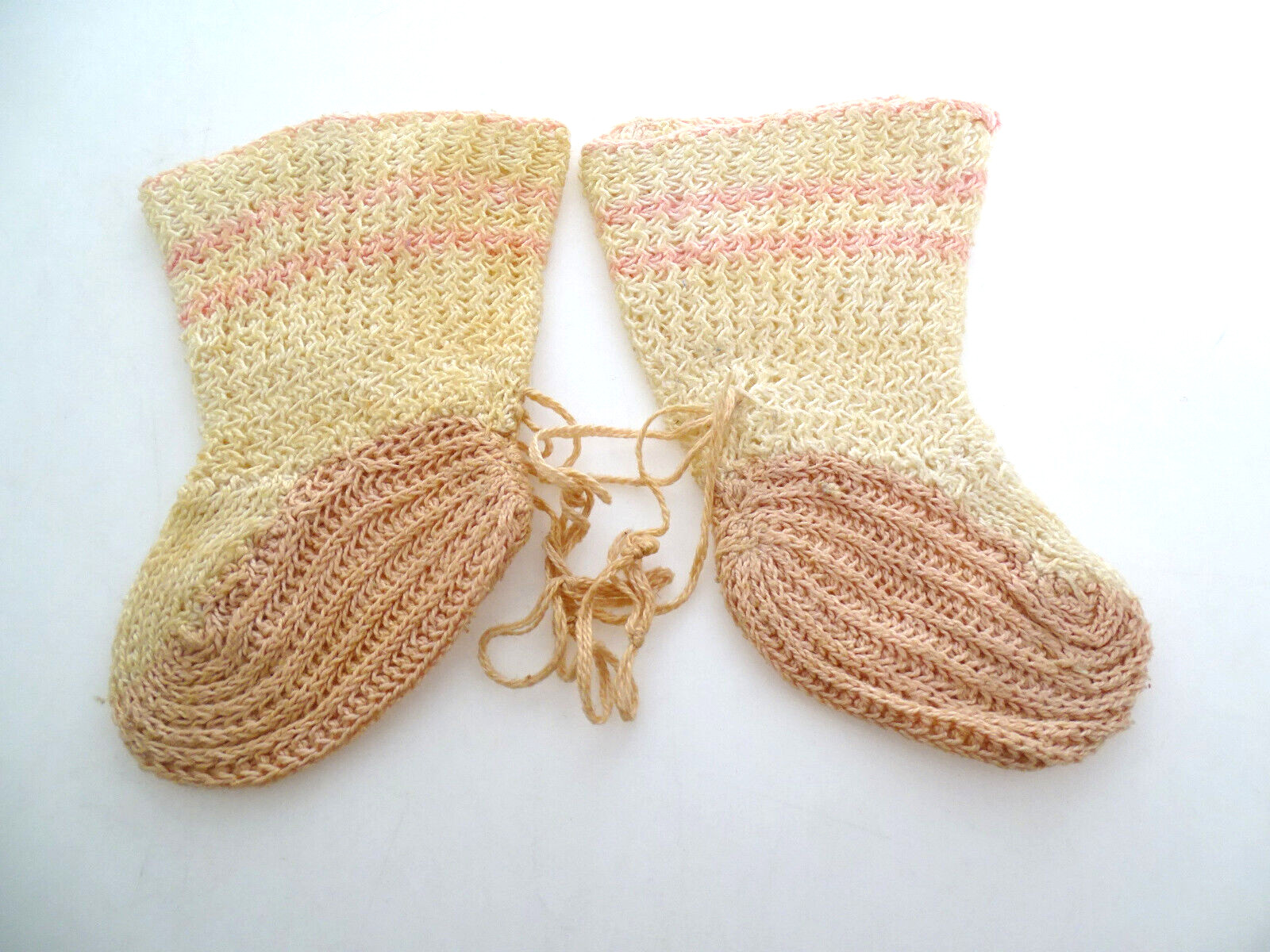 как выглядит Vintage 1940s Knit 3" Booties for Large Baby Doll Pink Beige фото