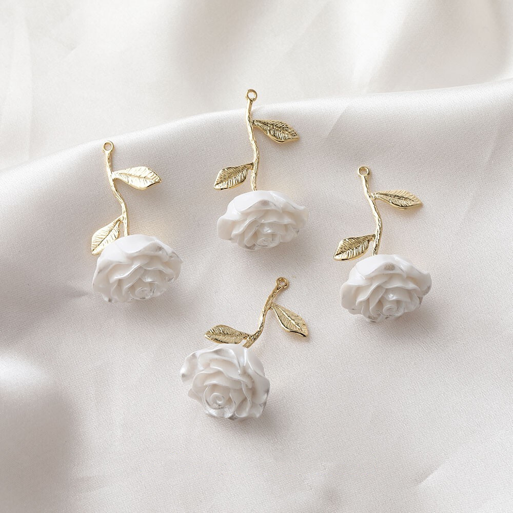 2pcs Acrylic Red Rose Flower Charm,White Resin Rose Flower Pendant With Loop