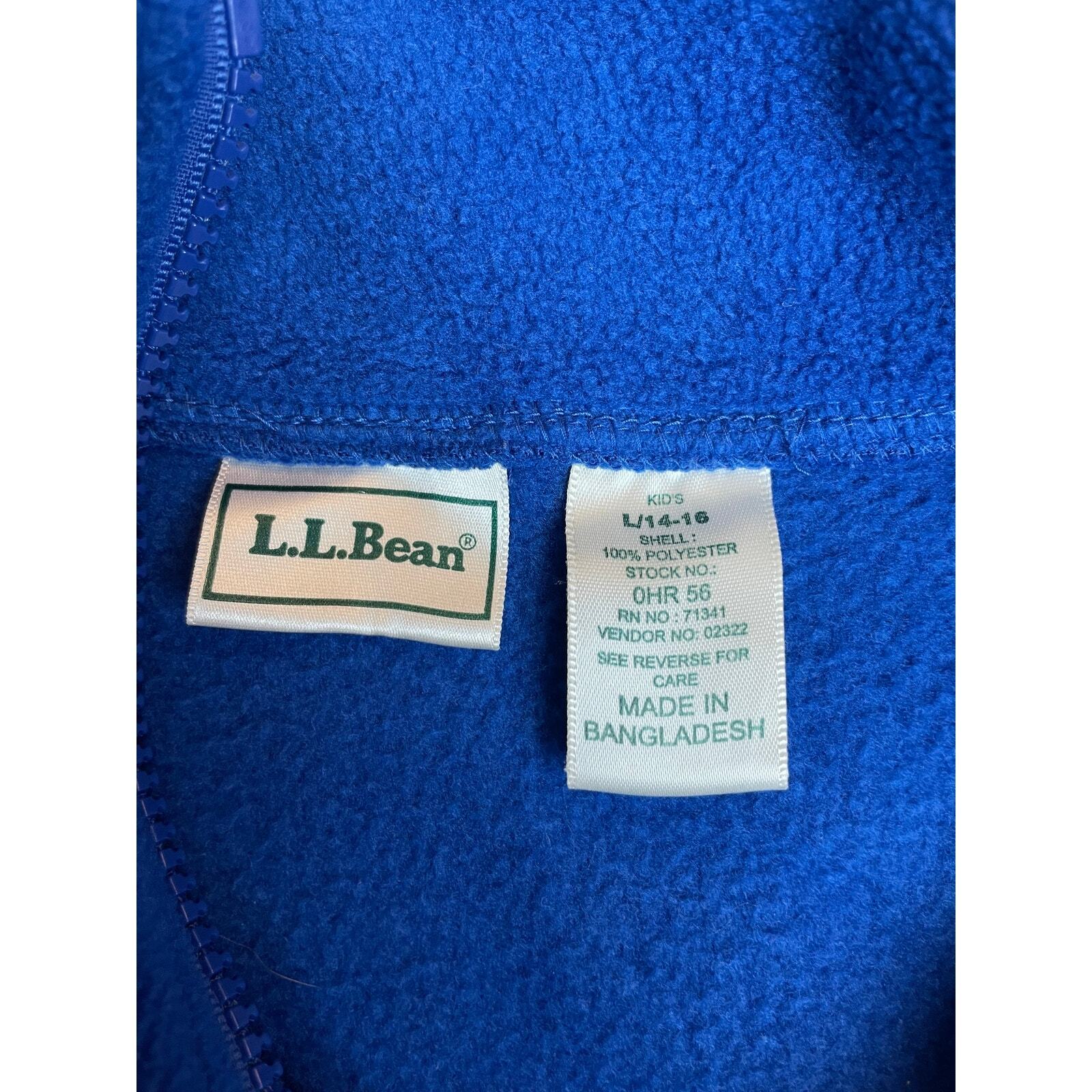LL Bean Vintage Vest Kids L 14-16 Blue Solid Fleece Full Zip Sleeveless