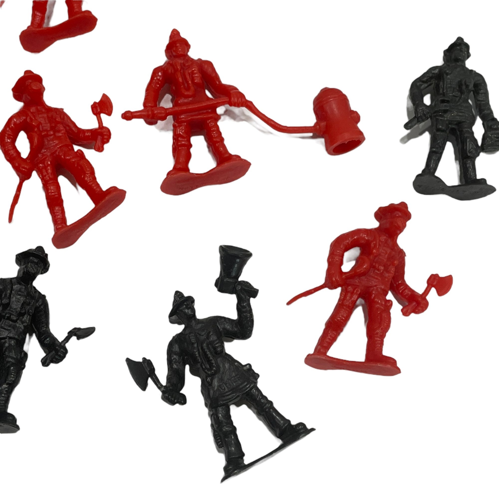 Lot Of Plastic Red Black Fireman Men Firefighters Toy Figures